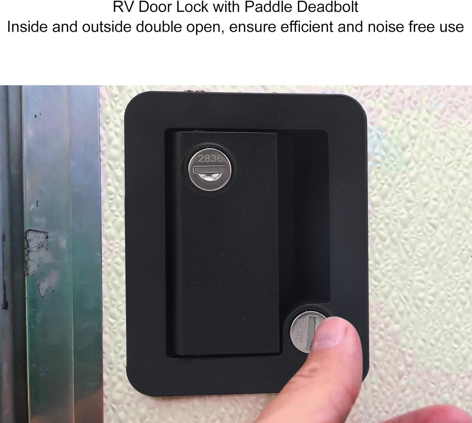 Spec: Item Type: Door Handle Latch Applicable Door Thickness: 1‑1/4in to 1‑1/2in Cutout Size: 2‑3/4in x 3‑3/4in Fitment: Fits for Trailer cargo haulers, horse trailers or custom utility trailers packing list: 1 x RV Entry Door Lock Latch Handle 2 x Latch 4 x Key 10 x Screw 1 x Screwdriver 1 x Instruction Manual