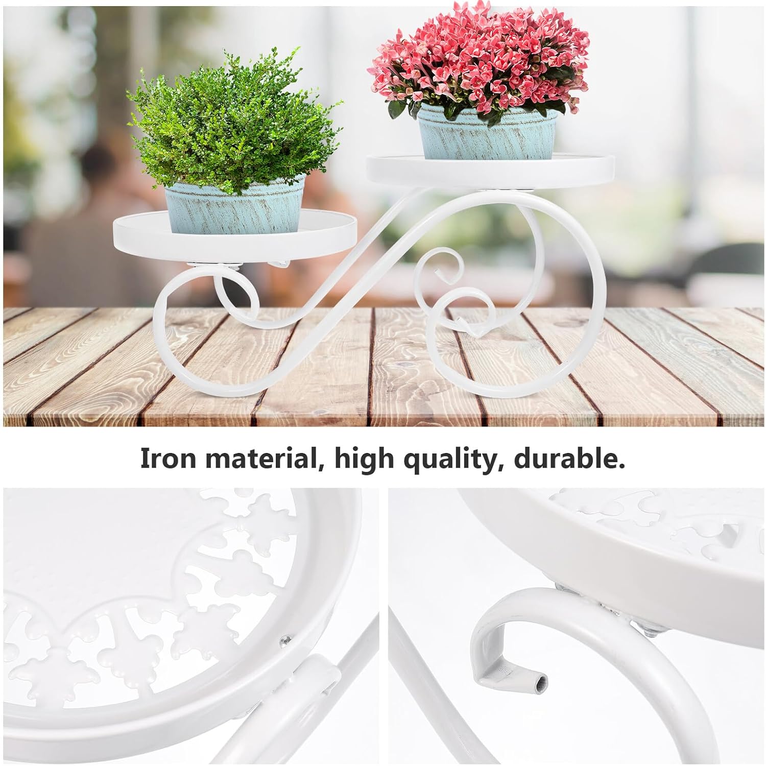 Package Include 1 x Flower Rack Features -Product Info:European flower stand -Material: Iron flower rack. - It is suitable for decorating gardens, living rooms, living rooms and other places flower storage rack. - Fine workmanship, smooth surface, easy to put on the balcony, easy to use plants display rack. - The design adds a natural style to your living space and garden flower rack indoor. - Made of iron material, it is practical and durable flower pot holder. - This flower pot stand is of premium quality and adds a perfect touch to your room and living room.Goods Descriptionflower rack Here is a practical display stand for flower pots.flower rack indoor The European design style can give you a good decoration of your home.flower storage rack This is the perfect choice to display the blooming flowers and plants.plants display rack This storage shelf can also be used as a housewarming gift for your friends.flower pot holder The floor-standing style is convenient for you to water