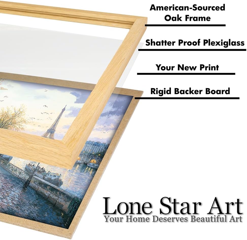 Experience the charm of Paris with our Evening Stroll in Paris: Eiffel Tower and Seine River Cityscape Poster. This must-have piece brings Parisian elegance to your space, featuring a serene depiction of an evening stroll by the Eiffel Tower and Seine River that adds a sophisticated, calming vibe to any room. The poster is framed in premium oak, made from natural solid wood with high-quality plexiglass and MDF backing, offering both durability and a minimalistic finish. Ready to hang in a standard 11" x 14" size, it's perfect for enhancing living rooms, bedrooms, kitchens, offices, man-caves, dorms, and home bars. This print also makes a thoughtful gift for any occasion, adding a touch of elegance to friends, family members, or colleagues' homes. Proudly designed and packaged in Tomball, TX, our print reflects the beauty of Paris at dusk with a commitment to quality craftsmanship and customer satisfaction.