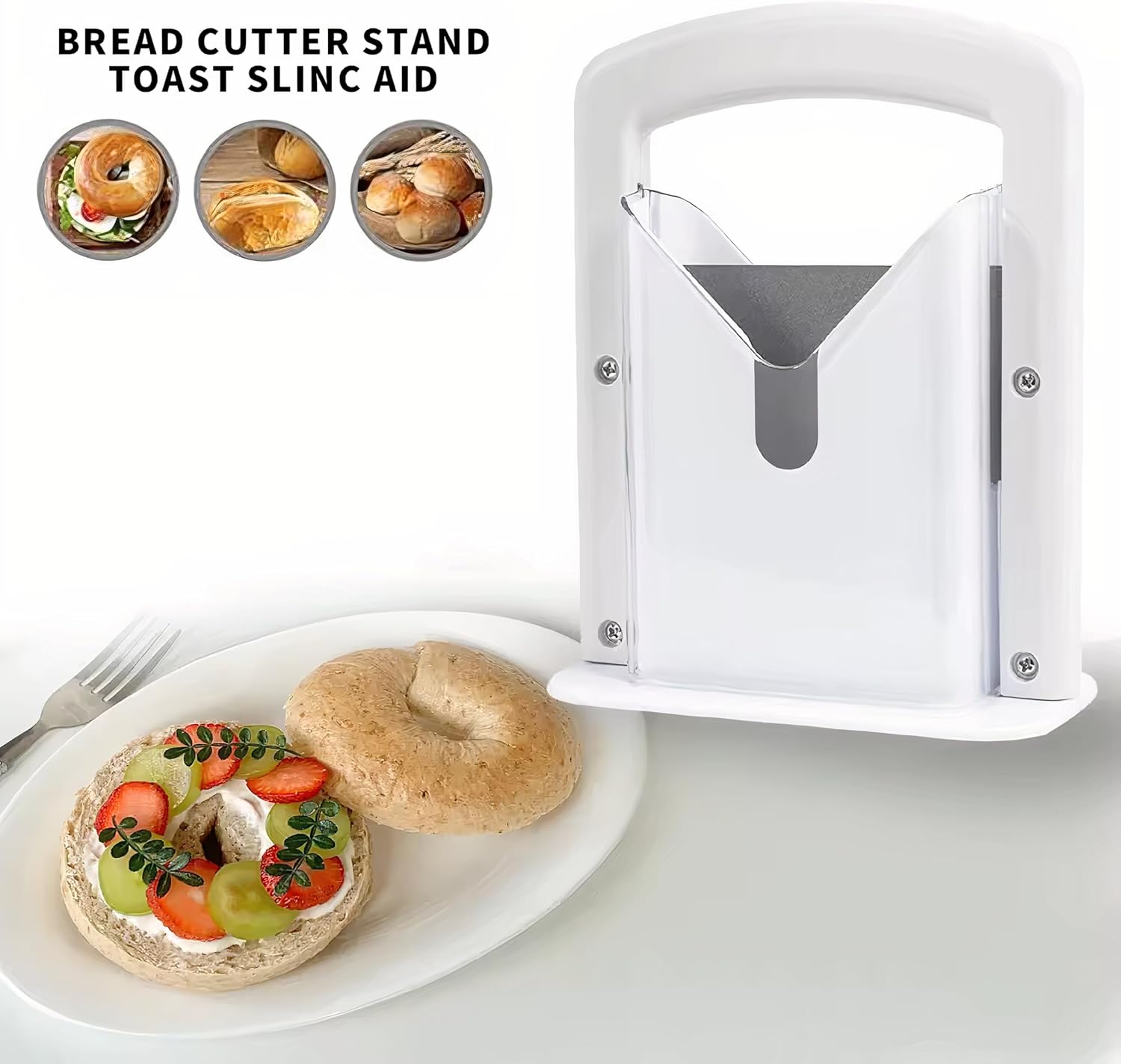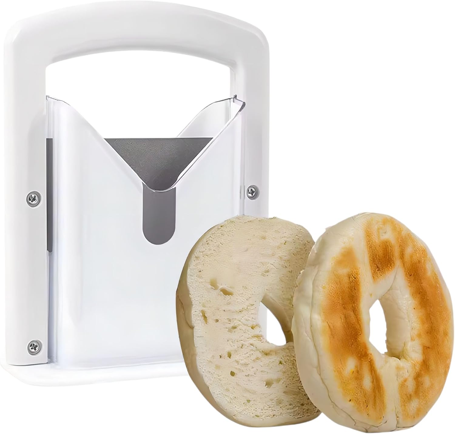 Start Your Mornings the Easy Way Never struggle with squished or uneven bagels again. The EverDwell Bagel Slicer makes breakfast simple, safe, and mess-free. With a precision guillotine design, it delivers smooth café-style slices in seconds—perfect for creating sandwiches, toasting, or serving family favorites. Safe and Family-Friendly Designed with a full safety shield and protective chamber, this slicer keeps hands away from the sharp stainless steel blade. It’s a kitchen tool you can trust for daily use, whether preparing breakfast for yourself or the whole family. Perfect Slices for Every Size From standard bagels to oversized bakery-style varieties up to 4.5" wide, this slicer handles them all. It also works on sandwich rolls, hamburger buns, and artisan breads, giving you versatility in one compact design. Cleaner, Easier Kitchen Prep The built-in crumb catcher keeps counters neat while the durable, dishwasher-safe construction makes cleanup quick and hassle-free. EverDwell Quality Crafted from strong materials with a space-saving footprint, the EverDwell Bagel Slicer is designed to deliver consistent results and reliable performance every morning.