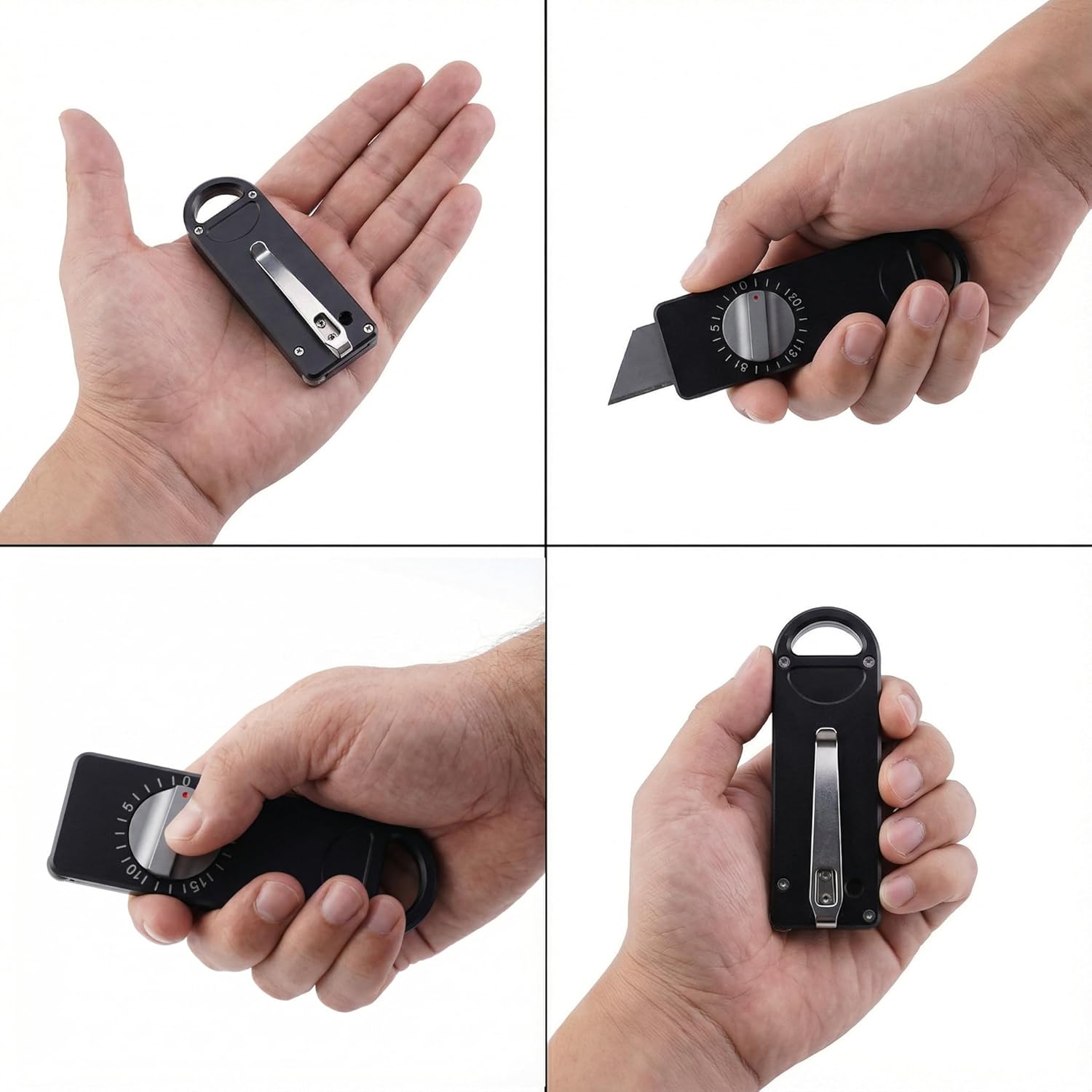 Precision Engineering Meets Everyday Utility Upgrade your EDC gear with our Scale Rotary Utility Knife, a tool designed for those who demand precision and durability. Unlike standard sliders, our knob-controlled mechanism allows you to dial in the exact blade length needed for the task, whether you are opening thin envelopes or cutting through thick industrial cardboard. Usage Scenarios Home & Mailroom: Effortlessly unbox deliveries without scratching the products inside by limiting blade exposure to 2-3 mm. Leather Crafting: Use the integrated roller guide to maintain a steady line for intricate patterns and straight edges. Office & Daily Carry: Compact enough for pocket carry, providing a sharp edge whenever needed for sharpening pencils or cutting zip ties. Stress Relief: Enjoy the tactile mechanical clicks of the CNC-machined knob as a desktop fidget device. Specifications Material: CNC Aviation Aluminum Alloy (Body), Stainless Steel (Holder). Blade Type: Standard SK2 Steel Trapezoidal Blades. Dimensions: Open 107.2 mm Closed 85.5 mm Width 30 mm. Weight: 59g Net Weight (94g with Gift Box). Adjustment: 24-Click Scale (1.0 mm per click). Included: 10x Spare Blades, 1x Screwdriver, 2x Spare Screws, 1x Waterproof Gift Box. Why Choose Our Graduated Utility Knife? By combining high-end CNC machining with functional innovation like the roller-tracking head, we provide a tool that bridges the gap between industrial equipment and artisanal craft tools. It’s not just a box cutter; it’s a piece of precision machinery for your pocket.