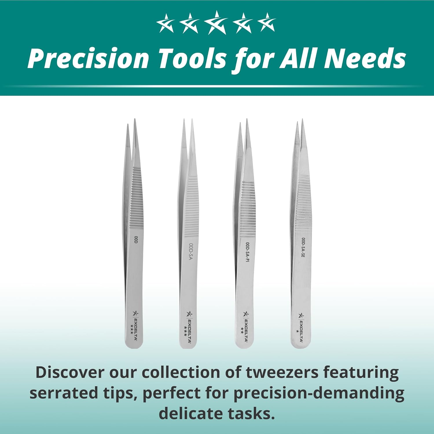 Are you looking for a do-it-all tweezer? Our professional tweezers are perfect for all your general-purpose needs. These tweezers are ideal for precision and ease of use, even in tasks that do not require magnification. They are made from high-quality, anti-magnetic Neverust stainless steel, ensuring durability and reliable performance in any setting. The medium-pointed design is universally recognized as the most popular choice for general use, offering versatility across various tasks. The serrated tips set these tweezers apart, which provide an enhanced grip on small parts, making them ideal for easily handling delicate components. At an overall length of 4.75 inches, these tweezers will fit comfortably in your hand, reducing fatigue during prolonged use. The strong grip handles offer stability and control, ensuring precision in every movement. Whether you're working in electronics, crafting, or any other field requiring meticulous attention to detail, these tweezers are indispensable. Equip yourself with these reliable tweezers and experience the perfect blend of functionality and precision in your work.
