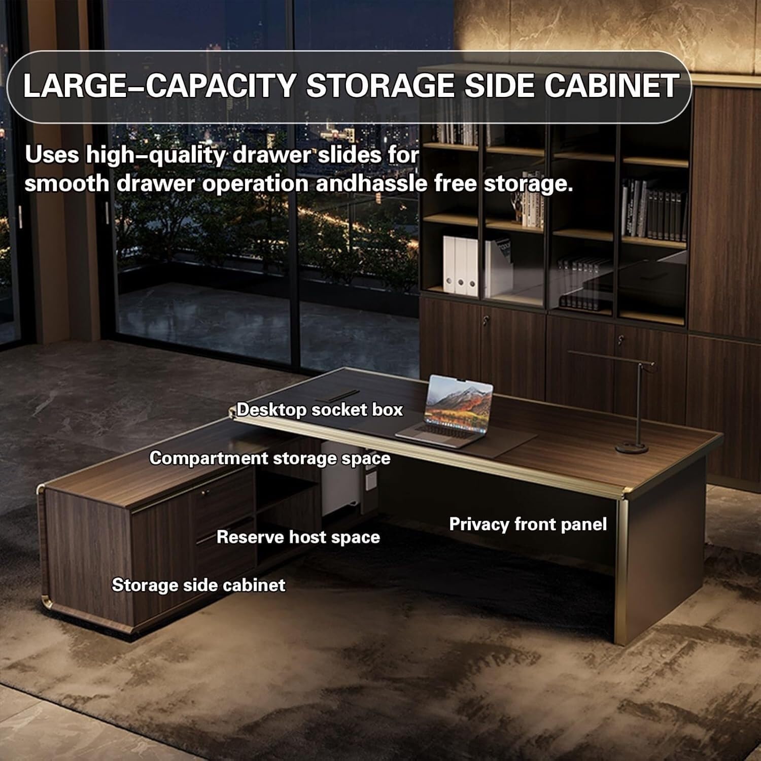 | Included Components | Built-in USB Port, LED ambient light strip, Multifunctional cable box |
