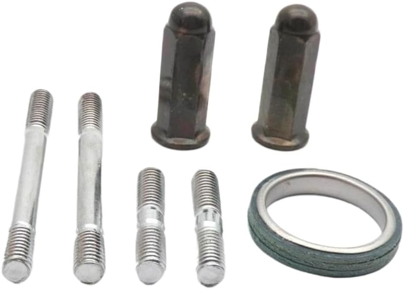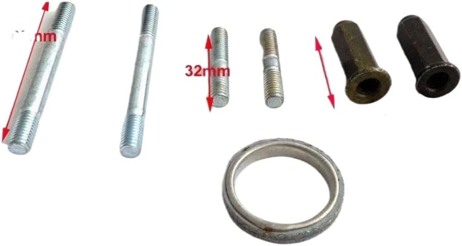 EXHAUST INTAKE STUDS NUTS AND GASKET For Scooter GY6 50cc 125cc 150cc Moped ATV Part Package includes 2 intake studs, 2 exhaust studs, 2 nuts, and 1 gasket.This kit is designed for use with GY6 engine models in , mopeds, and ATVs with engine sizes of 50cc, 125cc, and 150cc.The components are intended to support cylinder head installation by providing secure fastening for intake and exhaust manifolds along with a sealing gasket to proper fitment.