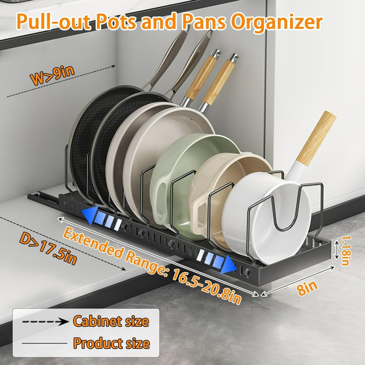 Transform your kitchen space with our Pull Out Cabinet Organizer, designed to combine style and functionality. Its sleek finish and modern design make it a perfect fit for any kitchen decor, whether contemporary or traditional. **Customizable Width Expansion** Our Pull Out Storage Rack is perfect for optimizing your kitchen organization. With a customizable width, it adapts to fit various cabinet sizes, providing tailored solutions for storing pot lids, frying pans, cutting boards, cookie sheets, bakeware, and more. Say goodbye to clutter and hello to a more efficient cooking environment. **Durable Carbon Steel Construction** Crafted from high-quality thickened carbon steel, this cabinet organizer is built to last. Its robust design is resistant to deformation and ensures long-term durability, while its waterproof and rust-resistant features guarantee easy maintenance and a clean look. **Easy Installation** Installation is straightforward with our innovative combination of nano rubber strips and guide rails, making it simple to set up in any cabinet. **Specifications** - Product Name: Pull Out Storage Organizer - Color: Black/White - Material: Thickened Carbon Steel - Size: 16.5" Depth x 20.8" Width **Important Note** Before installation, measure your cabinet dimensions carefully. This product is not suitable for framed cabinets.