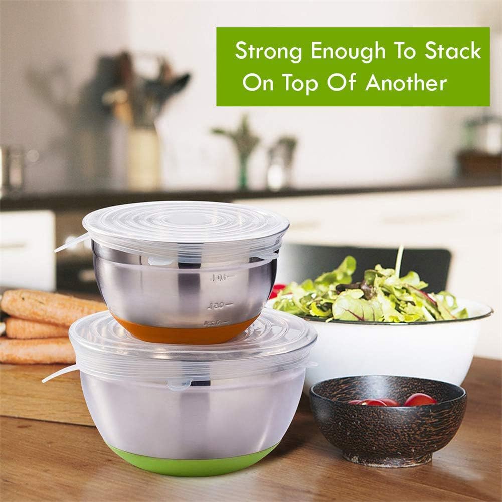 This silicone lids are made of 100% silicone environmentally friendly material. Keep your food fresh and hygiene , you can tasting great.The silicone lid did stretch tightly cover container, and airtight seal keeps food fresh longer and prevents spilling in the fridge or the freezer. And keep the food fresh in the refrigerator without leaks. You and your family can use it with confidence.These lids can be reused after washing, you can say goodbye to plastic wrap and eliminate the hassle of lost lids, help you reduce plastic waste and save money.Silicone stretch lids with hang holes it's convenient and environment for you to cove food in container than plastic wrap, cling wrap, tin foil and aluminum foil.It is durable, no need to worry it will tear up,reuse again and again without showing any wear or tear! Amazing!specificationProduct Name: Insurance coverSize: 6.5cm9.5cm11cm14cm16cm19cmColor: translucentMaterial: food grade siliconeFeatures: visible in perspective, high elasticity, large stretching rangepacking list:6* insurance coverNOTE:★If you have any questions, please leave us a message via e-mail, we will reply to you within 24 hours. ★If you are not satisfied with our products, please contact us and we will solve your problem ASAP, and make you satisfied.