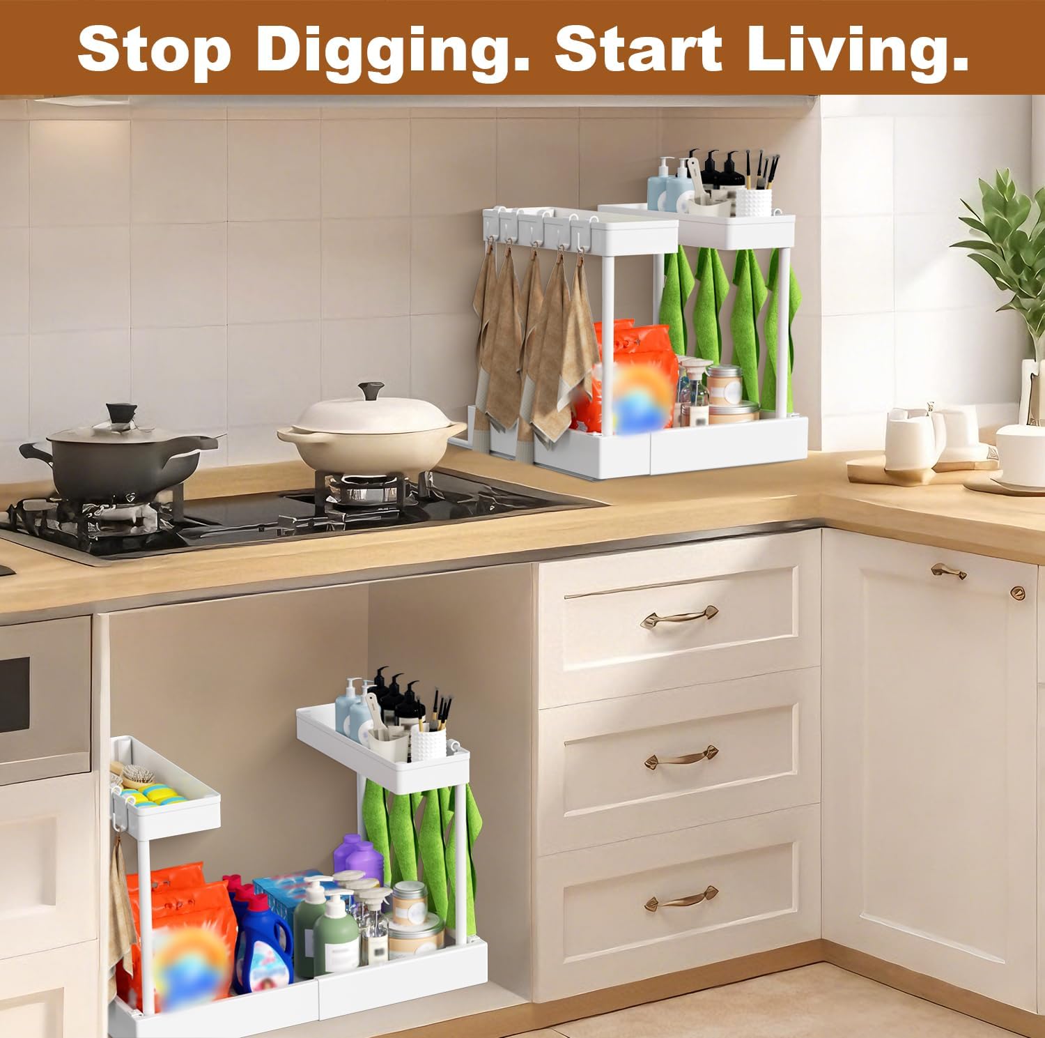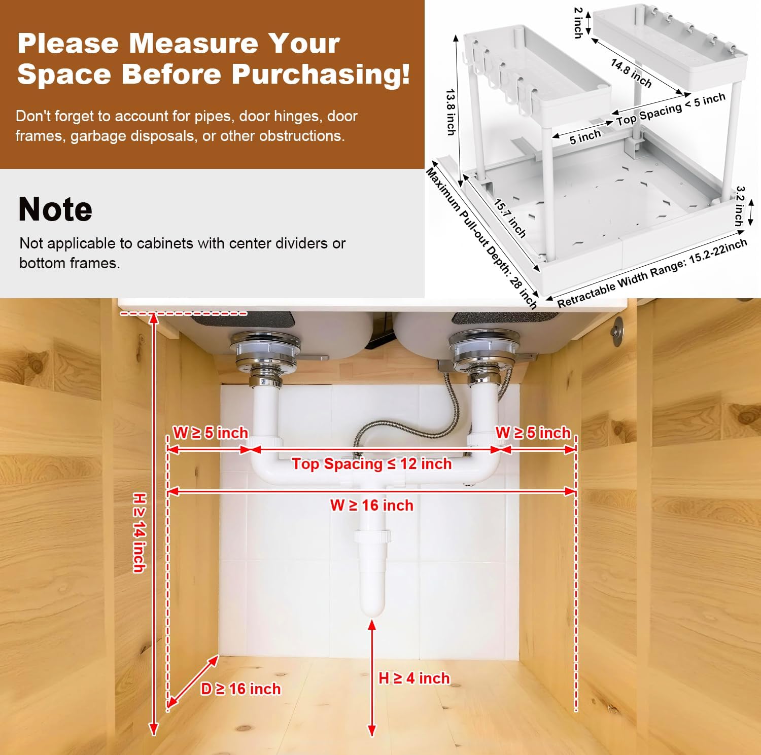 FOXHIVE Expandable Under Sink Organizers + Dish Drying Rack