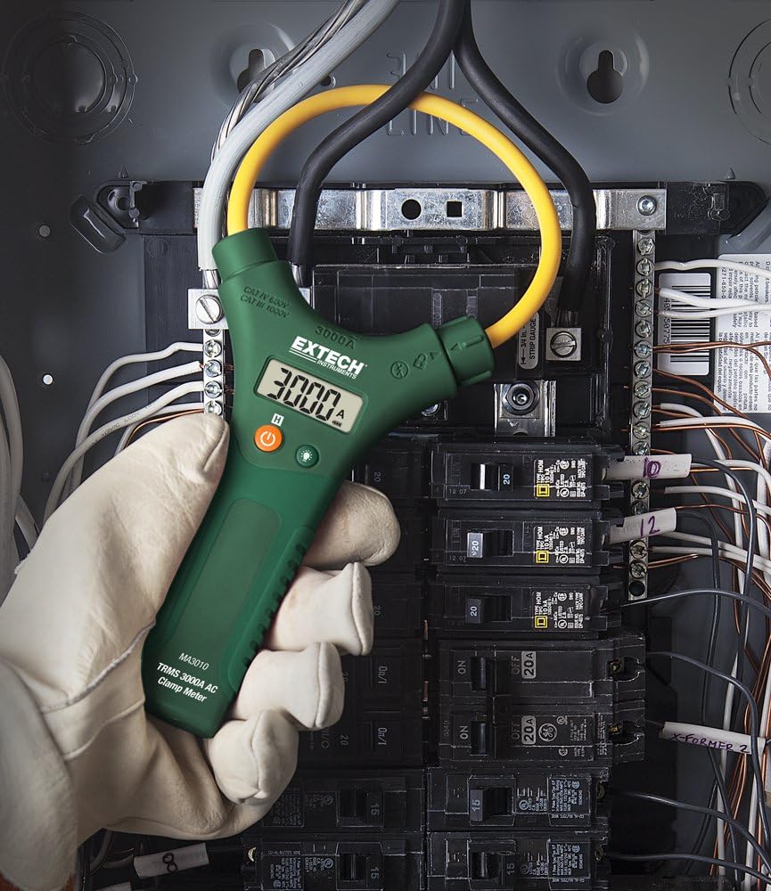 The MA3010 is a 3000A True RMS AC Flex Clamp Meter. The MA3010 features a 10 inch flexible clamp with LCD monitor. The True RMS measurements are for accurate readings of noisy, distorted or non-sinusoidal waveforms. Complete with two AAA batteries. UL listed and CAT IV 600V safety rating.