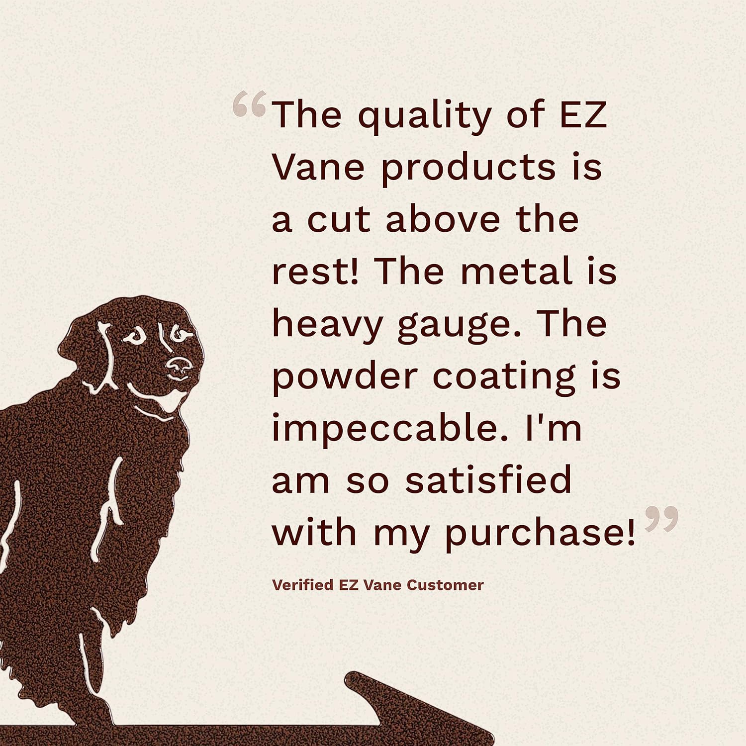 EZ Vane Golden Retriever Dog Weathervanes come complete with wind cups, directionals, and 4-sided mount compatible with nearly any house, barn, pergola, gazebo, shed, or cupola. The beautiful antique copper finish is a triple powder coat to bring a lifetime of enjoyment. Each component is laser-cut from heavy 14-gauge steel and the wind cups feature a sealed bearing to ensure smooth rotation. You’ll find EZ Vane weathervanes are a breeze to set up—in under 5 minutes! Made in the USA. Limited lifetime warranty.