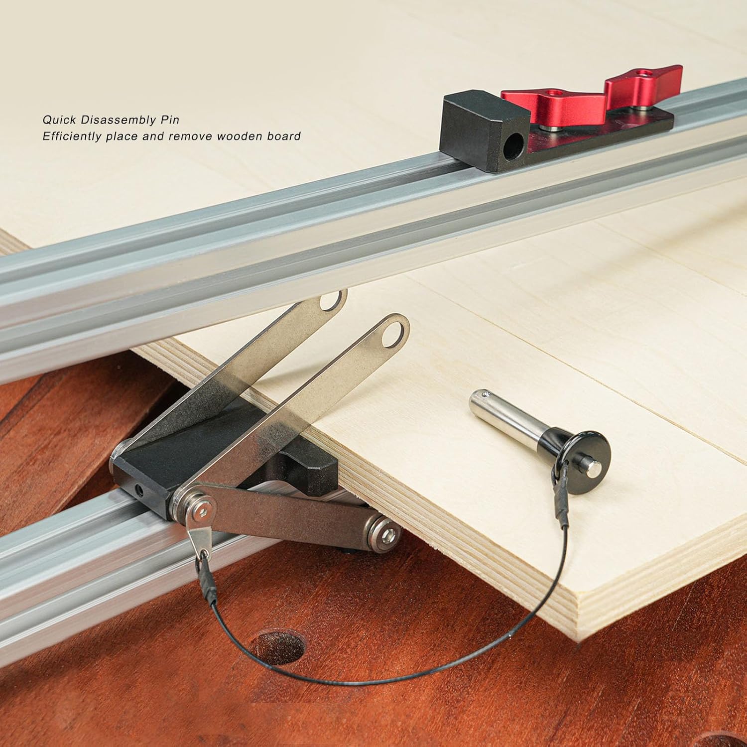 Specification: Item Type: Woodworking Panel Clamp Product Material: Aluminum Alloy, Stainless Steel Compatible Profiles: Suitable for 3030 aluminum profiles Clamping Width: Length of the assembled aluminum profile Clamping Height: Approx. 12-100mm / 0.47-3.94in Package List: 2 x Woodworking Panel Clamps 1 x Wrench 1 x Bit 1 x Bolt 1 x Adjusting Wrench Note: For best results, we recommend using with Euro standard 3030 type profiles (not included), with a wall thickness of 1.8 or above.