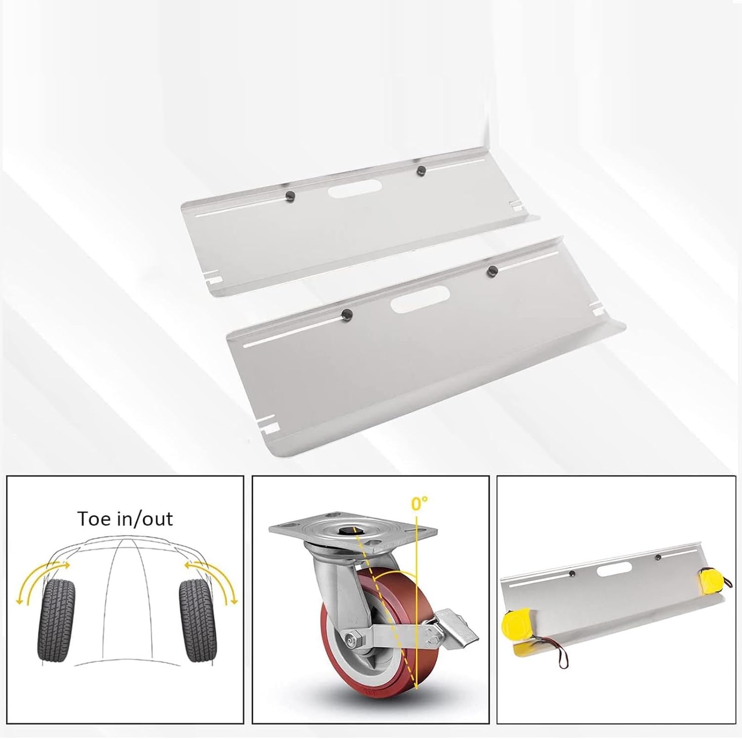 Features: Precise Wheel Measurement: This car alignment tool measures toe angle directly on the wheel hub using an adjustable rod, avoiding tire sidewall inaccuracies for correct readings. Secure Magnetic Fixture: Integrated magnetic slot in the wheel alignment tool firmly retains the tape measure head, facilitating stable and unassisted measurement sessions. Heavy-Duty Baseplate: The toe alignment tool plate is constructed from hard stainless steel, offering a flat, warp-free surface that maintains its integrity over extended use. Enhanced Measurement Stability: Rubber-padded triangular base on this alignment tool board ensures it stays firmly in place against the wheel, providing a steady platform. Broad Application Range: This wheel alignment tool set is compatible with many vehicles, including those with 15-inch wheels or larger, making it a versatile addition to your garage. Specification: Item Type: Wheel Alignment Tool Set Material: Stainless Steel Vehicle Compatibility: Suitable for various vehicles including cars, SUVs, and trucks. Compatible with hub sizes: 15in wheels (wheel diameter How to Use: Take out the product, install it, and it is ready to use. packing list: 2 x Wheel Alignment Tool Board 4 x Alignment Rod 8 x Alignment Rod Mounting Screw 8 x Screw Washer 4 x Antislip Rubber Pad 2 x Ruler Slot Fixture