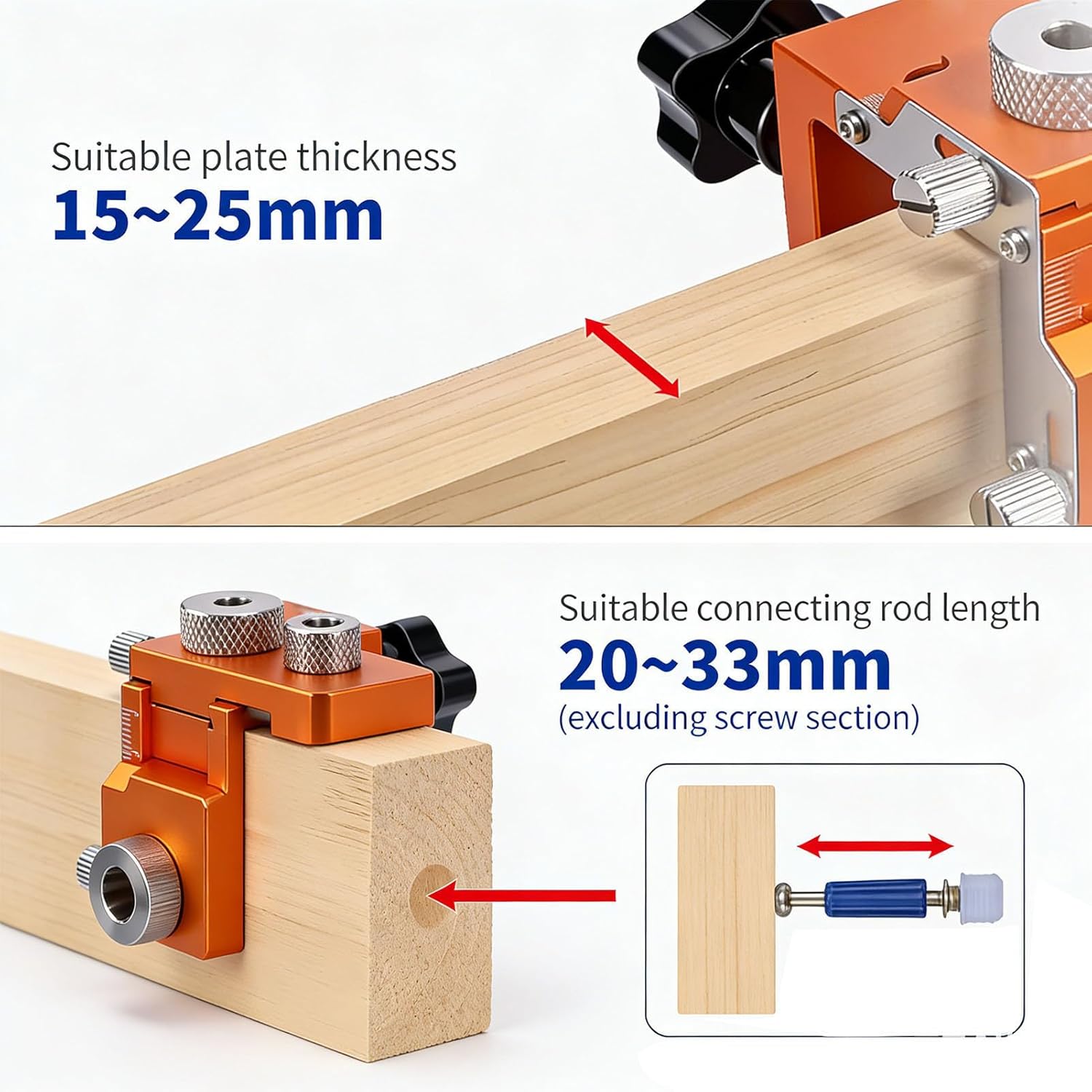 Specification: Item Type: Double Hole Punch Locator Product Material: Aluminum Alloy, Stainless Steel Applicable Board Thickness: Approx. 15-25mm / 0.59-0.98in Applicable Connecting Rod Length: Approx. 20-33mm / 0.79-1.3in packing list: 1 x Double Hole Punch Locator 1 x Hole Opener Bit 2 x Drill Bits 3 x Limit Rings 2 x Wrenches