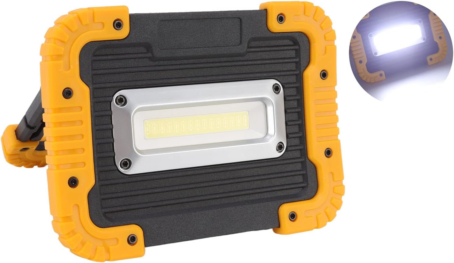 Specification: Item Type: COB Work Light Product Size: Approx. 17.5 x 13 x 4.5cm / 6.9 x 5.1 x 1.8in Battery: Built in 2 batteries, capacity 4400MAH (included battery) Light Source Form: COB lamp beads Product Function: Weak light and strong light Material: ABS Weight: Approx. 586g / 20.7oz Package List: 1 x COB Light (Battery Included) 1 x USB Cable
