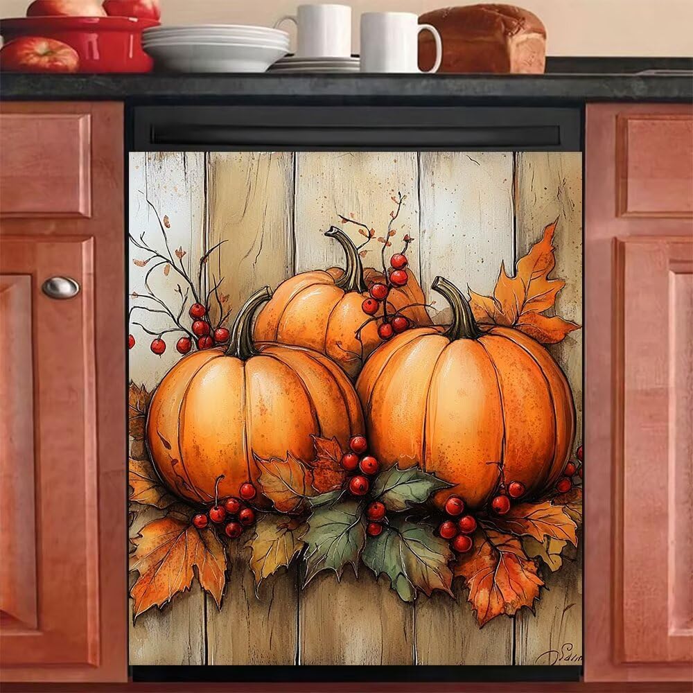 Are you still worried about the greasy and dirty dishwasher,cabinets?Come to our Autumn Pumpkins dishwasher Magnet Cover, which is beautiful and easy to use. It will give your kitchen an instant color and style, highlight your personal quality of life, and beautify your living environment.The advantages of this dishwasher/refrigerator magnet can attract you:+ Heat resistant;+ Waterproof;+ Eco-Friendly;+ Scratch, and Tear Resistant;+ With a smooth surface,environmentally safe;+ You can do DIY splicing.Kitchen Dishwasher Covers Size: 23 W x 26 H inches; 58.5 W x 66 H cmImportant note: Before ordering Magnetic Sticker, verify that your dishwasher panel cover is magnetic. If a magnet sticks to your dishwasher, so will our magnetic dishwasher cover!/b>Service: If you have any questions about the product, please feel free to contact us. No Risk Purchase, Hassle-Free Returns