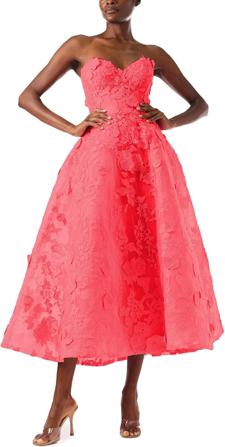 | Embellishment Feature | 3D Floral Applique Tea Length Dress |