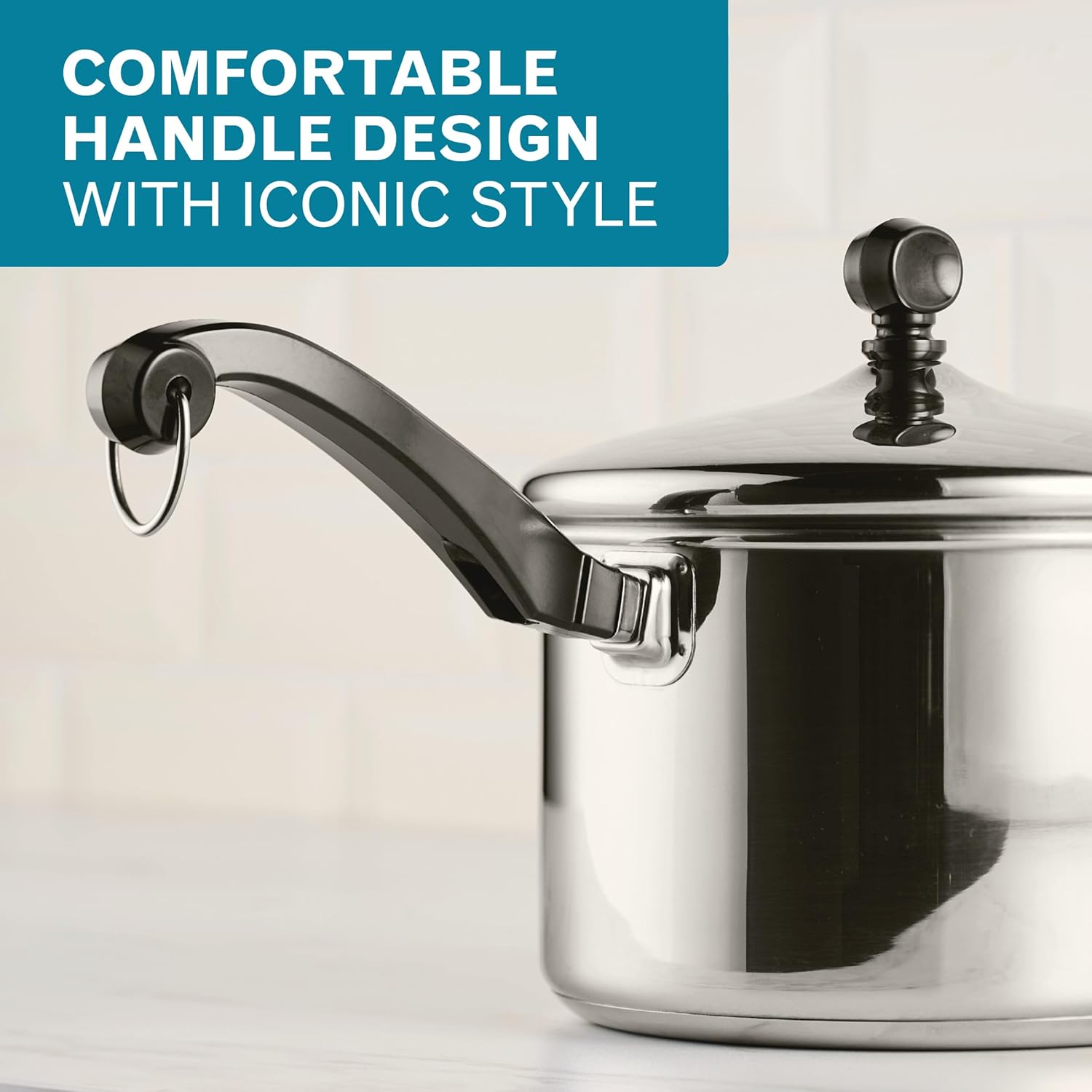Cook up your own classic meals with the endlessly versatile Farberware Classic Series Anniversary Edition 8-Piece Stainless Steel Cookware Set, created exclusively for Farberware’s 125th Anniversary. This special edition set features two large family favorites: a generous 8-quart stockpot and a roomy 3-quart sauté pan, giving you extra space for big-batch soups, stews, braises, and family-sized one-pan meals. Pots and pans feature a full cap base with a thick aluminum core surrounded by stainless steel for rapid, even heating. Heavy-duty stainless steel is polished to a mirror finish for a classic touch. Comfortable handles with iconic styling and snug-fitting lids boast attractive bell shapes, eye-catching knobs, and rolled rims for added durability. Induction-ready, oven-safe to 350 degrees F, and dishwasher-safe for effortless cleanup, this set combines enduring quality with elevated everyday performance.