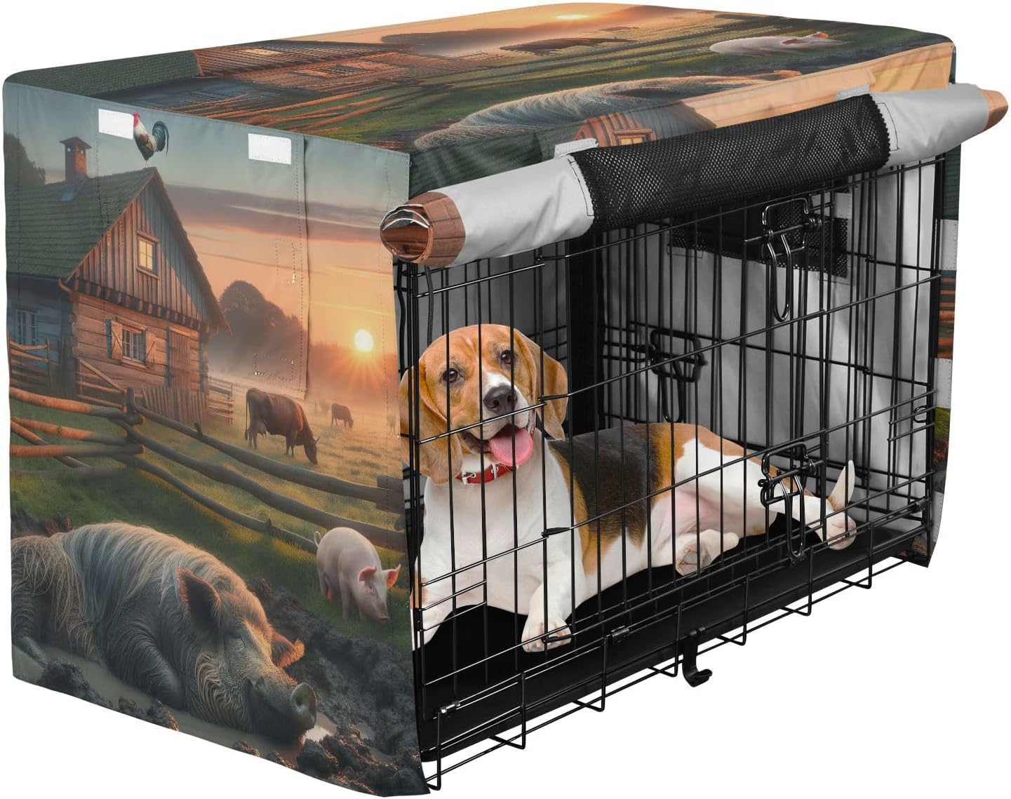 Premium Protection – Constructed from 600D silver-coated oxford fabric, this water-resistant dog crate cover offers excellent protection from rain, wind, and sunlight. It helps prevent scratching and keeps your pet’s crate protected from external elements.Quick Setup – This crate cover is designed for easy installation, with a simple fastening system that ensures a secure fit without the need for tools or extra help.Mesh Windows for Comfort – This cage cover includes mesh windows on all sides, promoting airflow to keep your dog cool and comfortable while providing privacy and a sense of security inside the crate.Secure and Stable – With four tie-down straps at the bottom, this breathable pet cage cover remains securely in place, even during windy conditions. This feature ensures that your dog’s crate is stable and protected from the elements.Flexible Usage – This dog cage cover is suitable for both indoor and outdoor use, making it a Ideal solution for protecting your pet's crate whether at home, during travel, or on outdoor adventures.