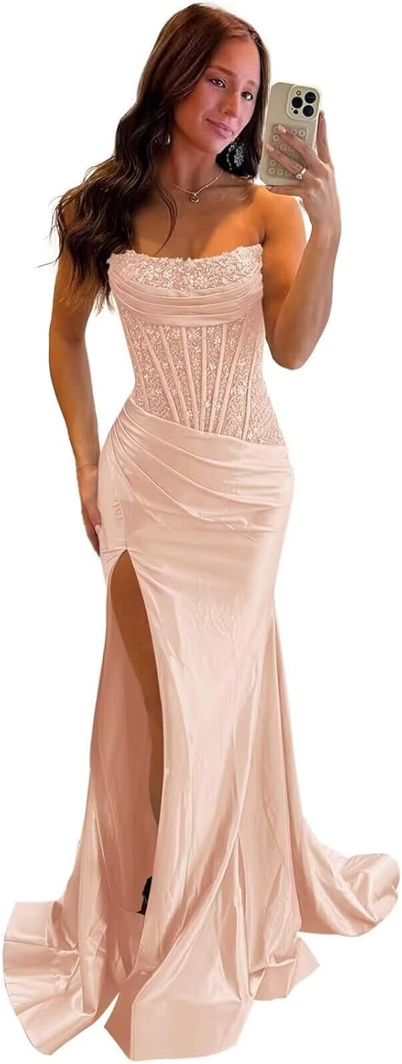 | Fabric Type | Strapless Satin Sequin Prom Dresses |