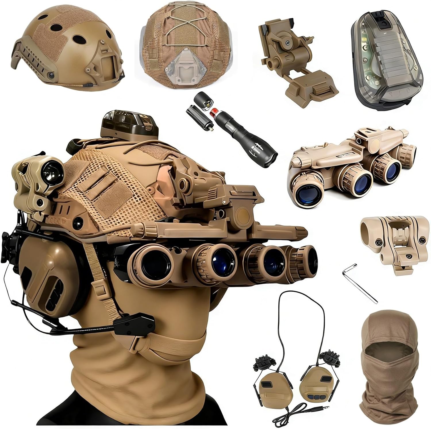 Fast Tactical Shooting Helmet Set with Four - Eye Night Vision Model, Signal Lamp & Tactical Headset - Airsoft Helmet for Paintball Cosplay Military Props