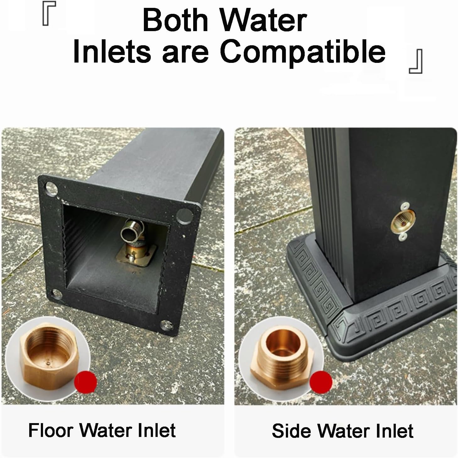 Decorated with a lion head on top, this faucet column has a classic design that adds a unique touch and becomes the focal point of your outdoor space. Product name: Freestanding garden water column with faucet, vertical garden water column Product material: Aluminum alloy Installation method: bottom water inlet and side water inlet Interface specifications: 46 points 2 size available: 28.3in, 44in Base size: 6.6x6.6in Column body size: 3.9x3.9in Combining elegance with functionality, our outdoor garden faucet water column is ideal for enhancing the style of any garden or backyard. making them an attractive addition to any outdoor setting.