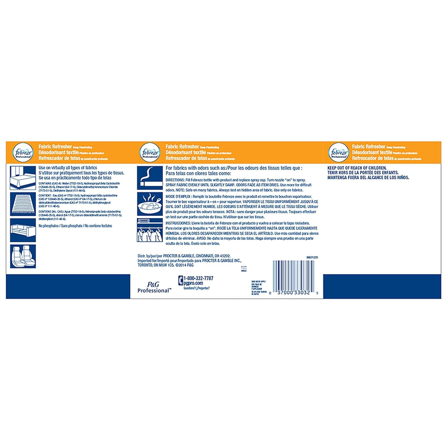 Febreze Professional Fabric Refresher is your go-to solution for keeping your home and business smelling fresh and inviting. In a busy environment, odors can easily get trapped in fabrics like drapes, carpets, and upholstery, making the space feel less than welcoming. This pack of three (3) 32-ounce bottles is designed to tackle those tough odors head-on, using advanced technology that doesn’t just mask smells but truly eliminates them at the source. With a light scent, this fabric refresher leaves behind a subtle freshness that your customers will notice and appreciate. Whether you’re managing a hotel, a restaurant, or an office, Febreze Professional Fabric Refresher helps you maintain a clean, pleasant atmosphere that everyone can enjoy.