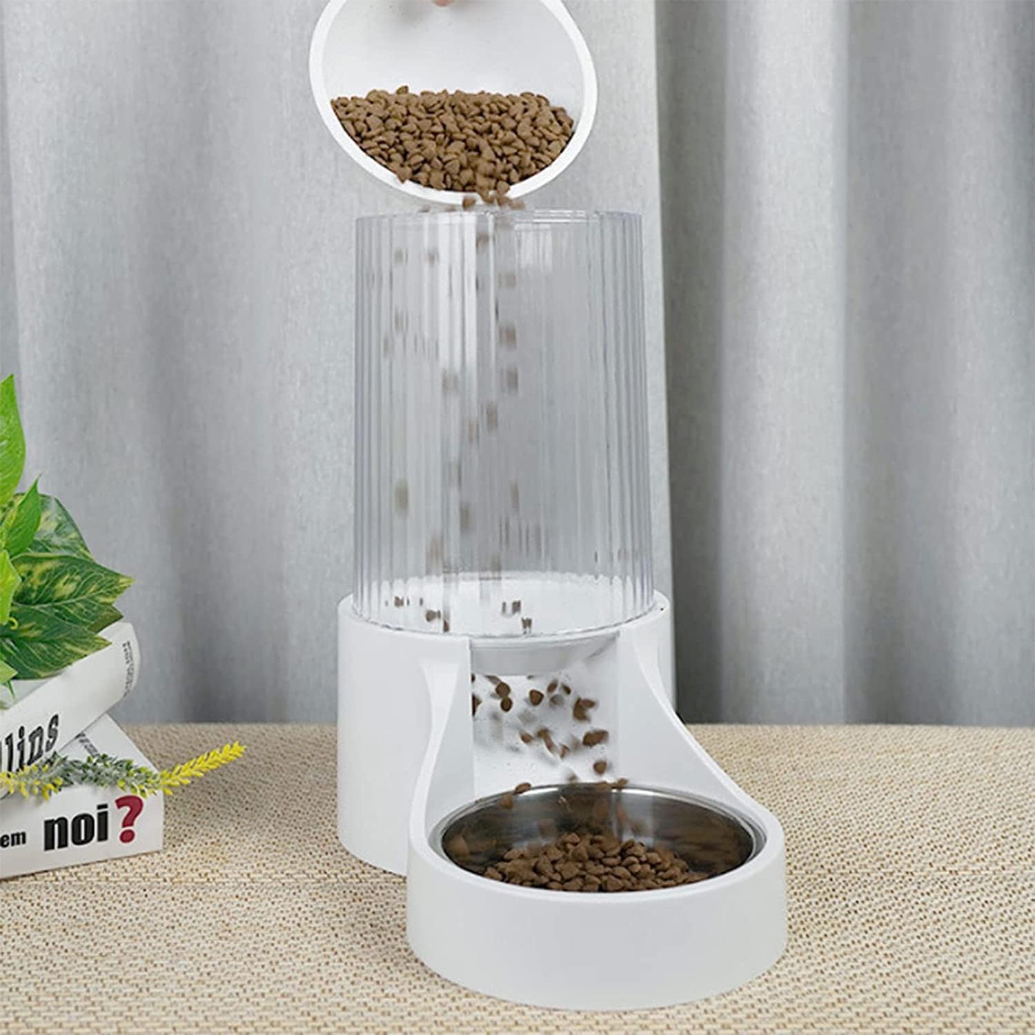 Make your pet enjoy fresh food and clean waterGood materials: Made from hardwearing flexible plastic, our auto pet feeder to provide clean and healthy water and food for your pets.Home Décor: Not only providing a continuous flow of food and water but also compatible with every home décor style; Spacesaving footprint is great ideal for kitchens, laundry rooms, garages and other indoor areas
