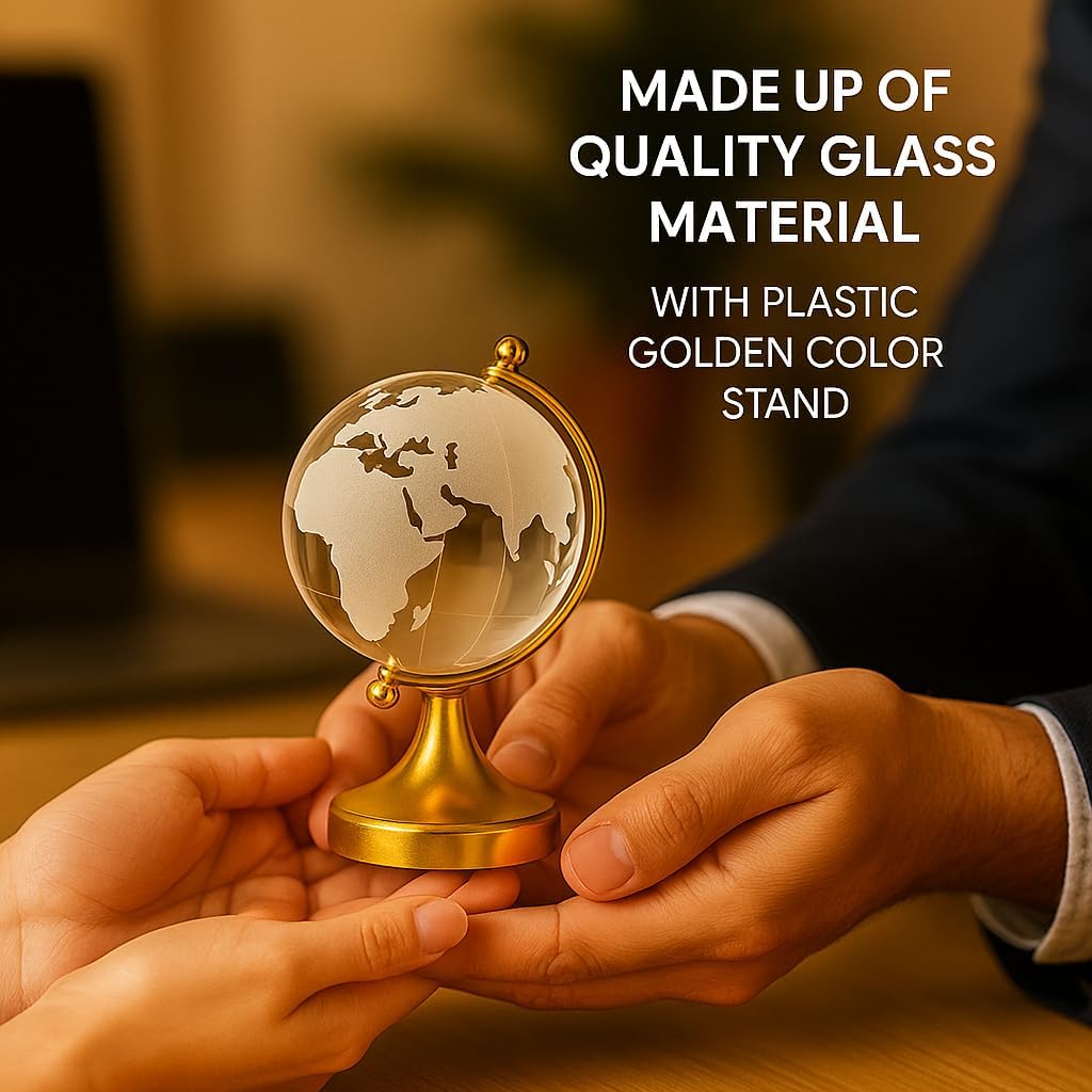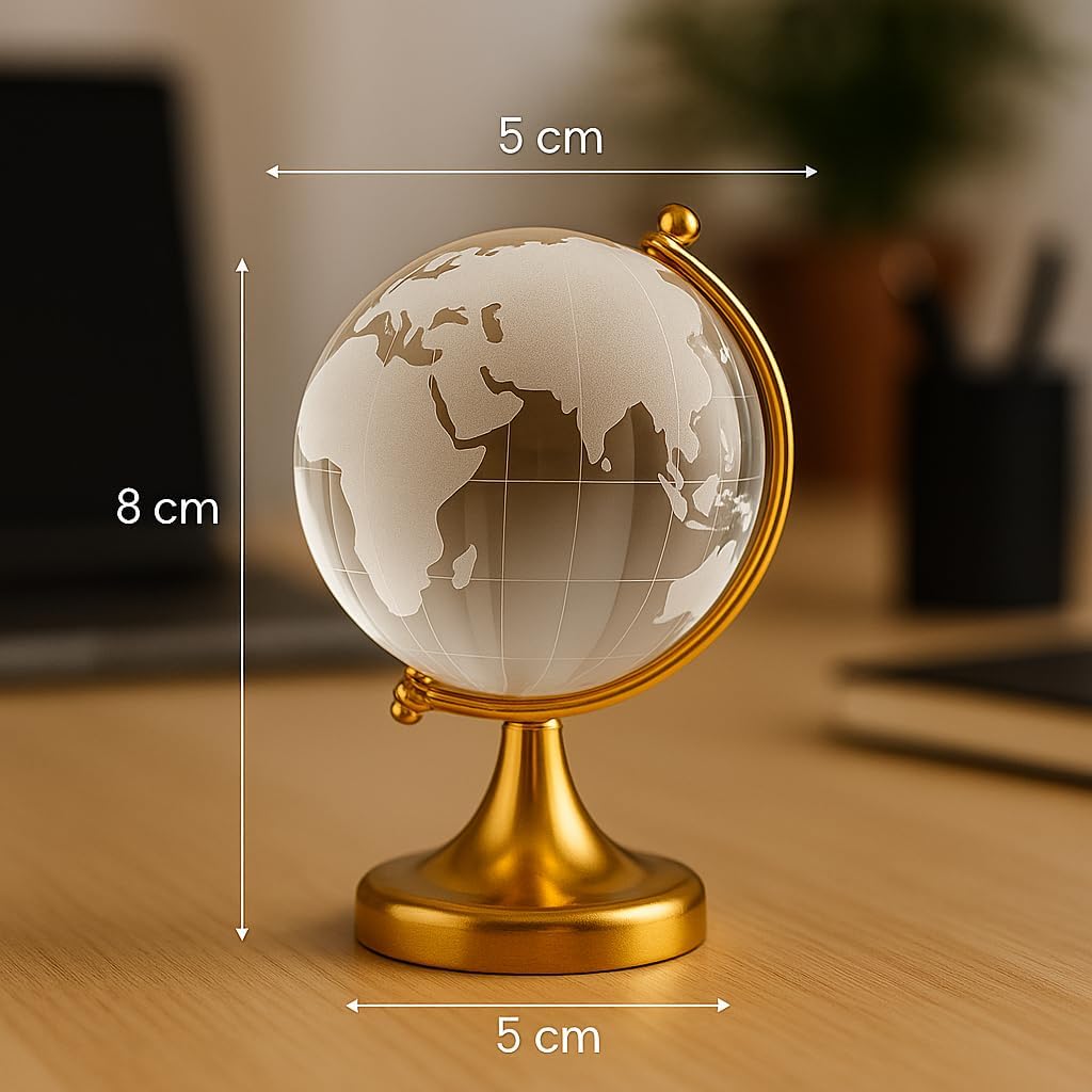 Shoppersduniya crystal globe made up of quality glass material. As Per Fengshui - crystal globe symbolizes success, good luck, victory and education luck. It Should Be Placed on Study Table or Office Desk. This is a crystal fengshui globe used for activating success and studying endeavors. It is believed that placing Crystal Globe on your table and revolving the crystal globe daily in a clock wise direction for 2 - 3 times improves the business acumen and intelligence. This globe should be placed on the North & East direction of your working table. Good for people who like to have business from all over the world or trade internationally. It will bring you improved relationships to enhance your career and wonderful network enhancement. it will bring you luck in your studies and any examinations. Perfect gift for every occasion such as wedding, anniversary, birthday, house warming parties, and also for home, office, car dashboard décor. Product color may change by photographic settings.