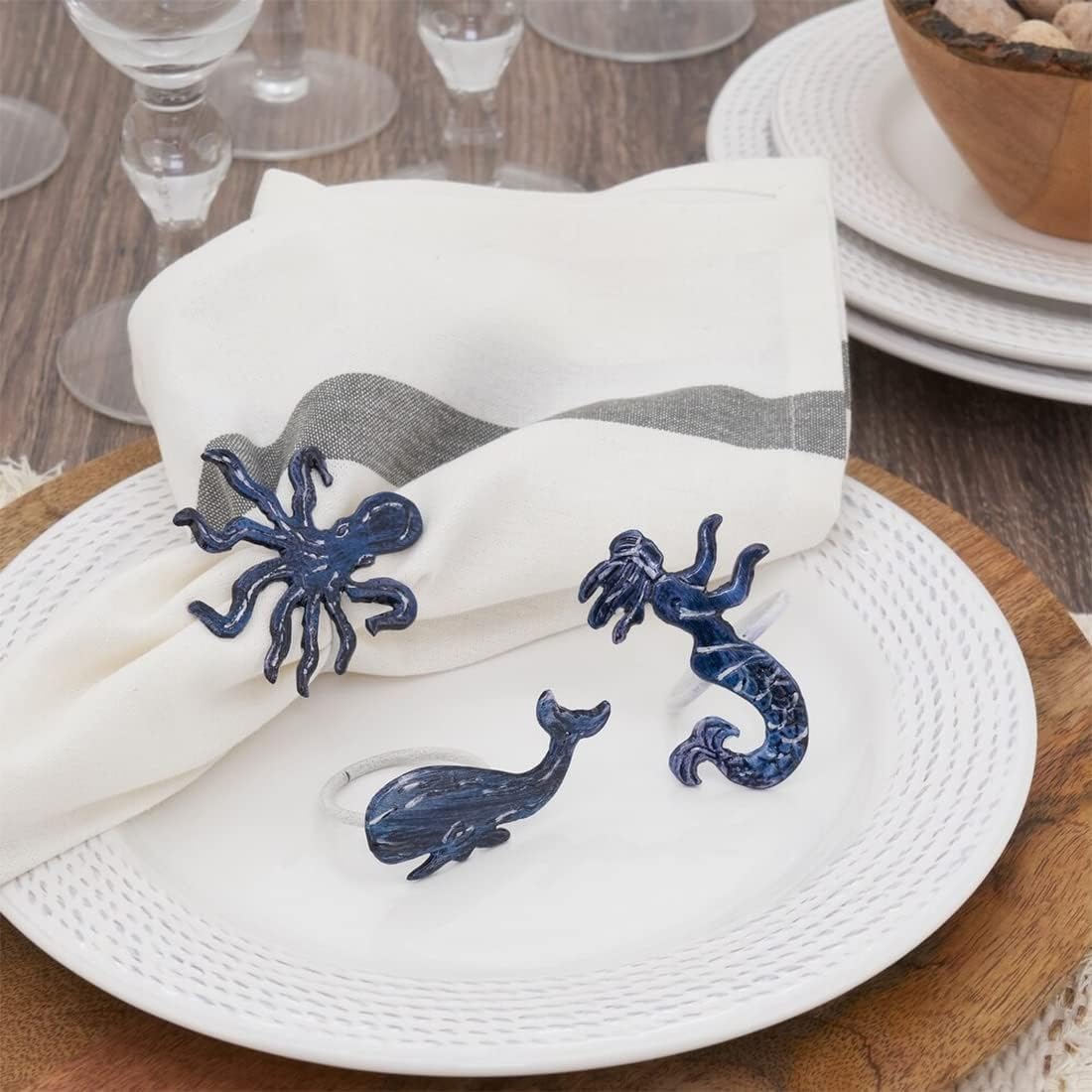 Fennco Styles Coastal Octopus Brass Napkin Rings, Set of 4 Enhance the coastal mood of your dining room with these Octopus Design Napkin Rings. This unique Octopus napkin ring set features a beautifully crafted navy blue finish with exquisite detail design in the sculptural style for a bit of texture. A perfect update to your summer décor and coastal-themed spaces. PRODUCT DETAILS :Dimensions: 1.75 x 1.25 inches; 1.5 inches diameter Material: brass Care Instructions: wipe with a damp cloth Our Philosophy:At Fennco Styles you can shop a carefully selected range of home, lifestyle and gift products. We believe our homes should be reflections of the journeys we take. Our personal spaces deserve designs with a soul, a story, and a purpose. Our lifestyle brand offers inspired living through high-quality products, exclusive designs, and timeless style. We aim to source ethically, looking for products that are made from sustainable materials and designed to last and seeking out Makers that are conscious of their impact on the environment.