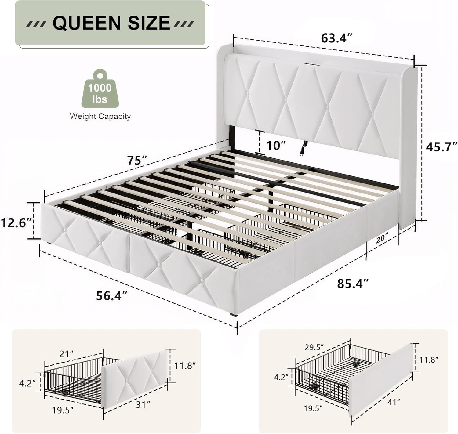 | Other Special Features of the Product | No Box Spring Needed, Squeak Resistant, Storage Drawer*4, USB Port |