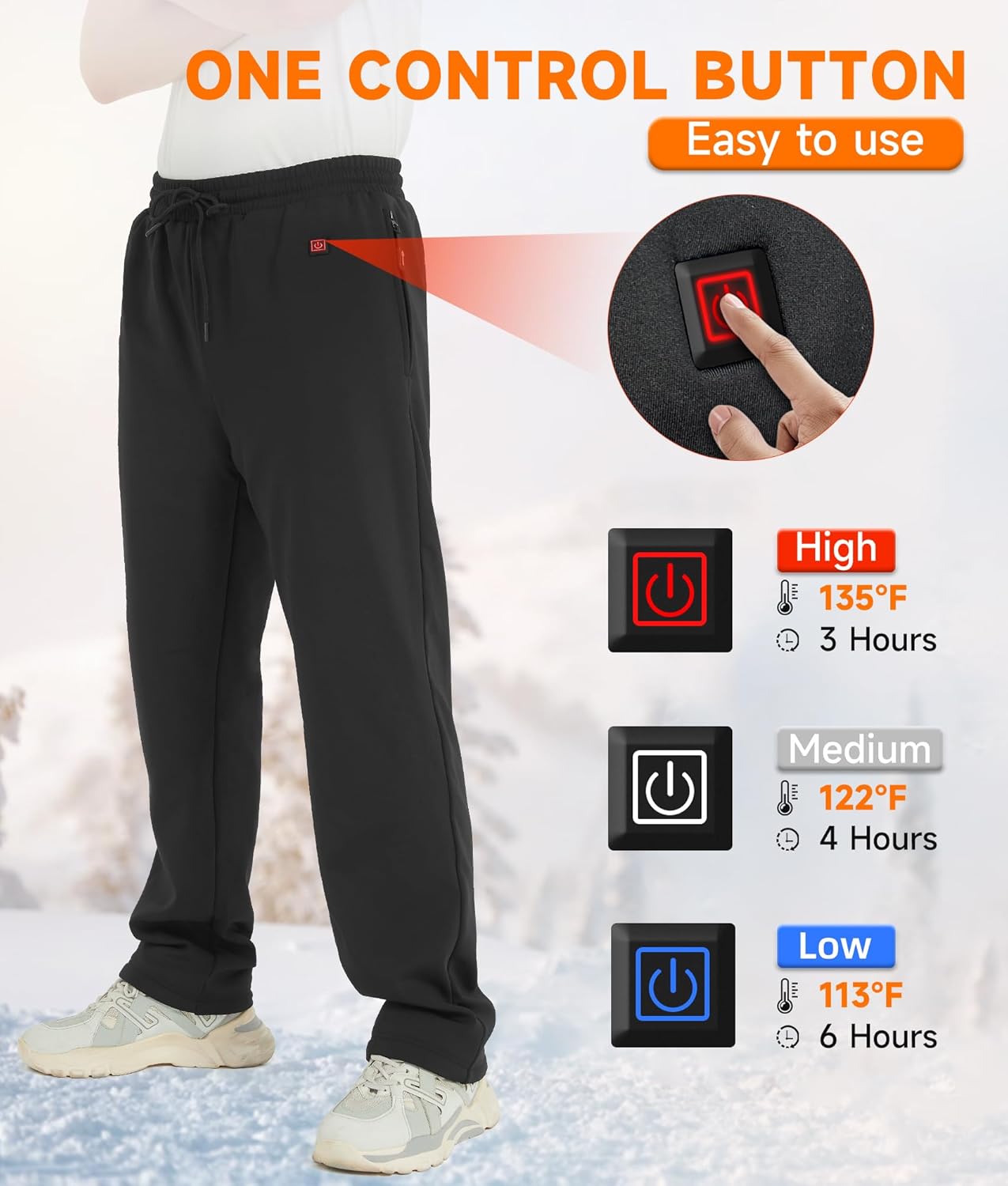 Heated Pants for Men and Women with 10000mAh Battery Pack 5V USB Electric Heated Pants, Fleece-Lined & Thick Midweight Heated Trousers for Winter Outdoor Leg Warming