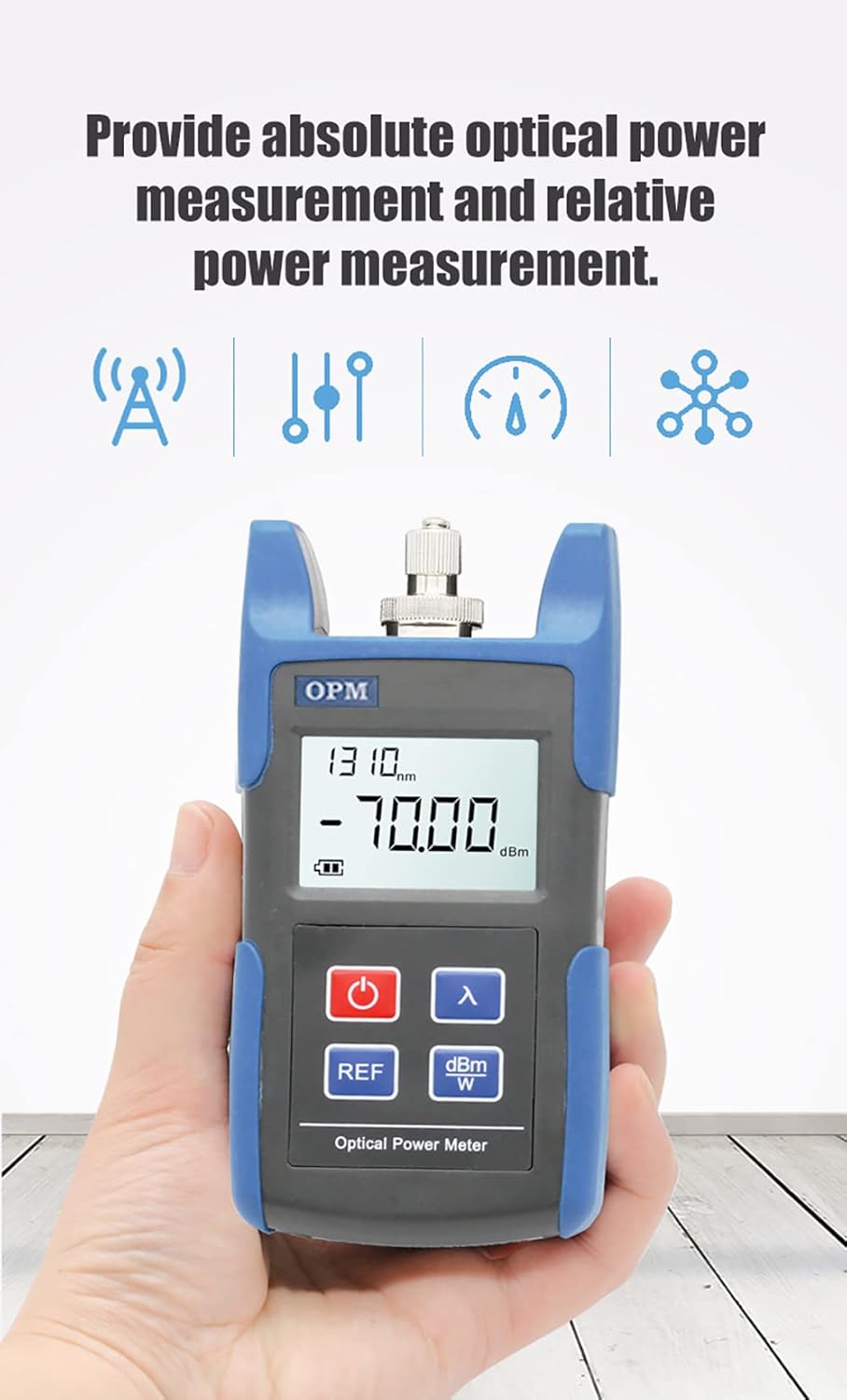 • Test Range: -70~+10dbm, Support Wavelength (nm): 850/1300/1310/1490/1550/1625.