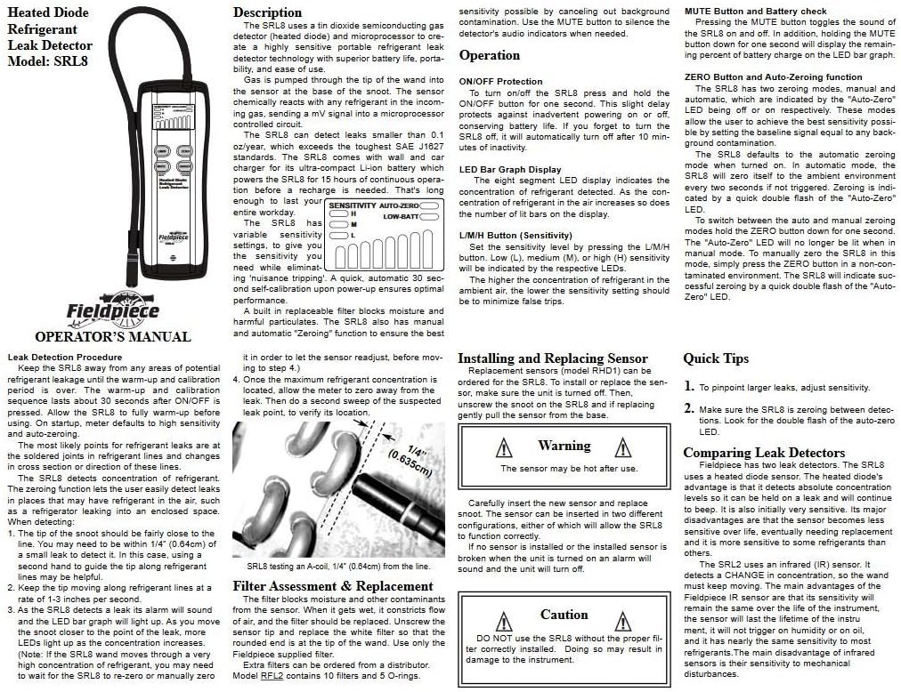 The SRL8 Heated Diode Refrigerant Leak Detector is designed exclusively to make the HVAC/R Technician's job easier, faster, safer and more efficient. We set out to develop the best heated diode leak detector for HVAC/R. We believe the SRL8 is it. It comes in kit form in a rugged, blow-mold case with all of the extras you don't get from the other guys.