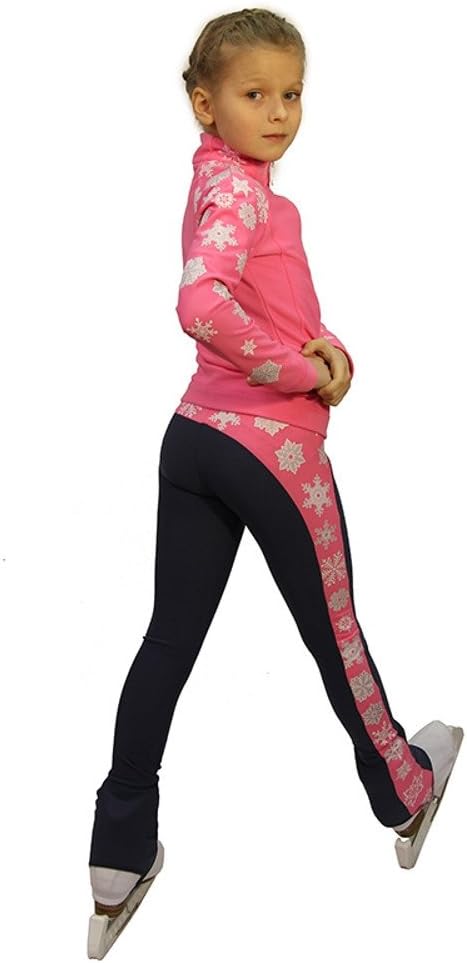 Training outfit "Snowflake" for figure skating is made of the Italian techno-fabric Vuelta We are pleased to present the familiar in a whole new fashion world colour fuchsia. This color is individually painted in Italy for our company. The undoubted highlight of the set consisting of jacket and leggings is the perfect cut and colour. Complex relief lines provide a perfect fit and the best way accentuate the figure. The cut sleeve "Raglan" winning way sports emphasizes the mood of the model, makes the jacket the most convenient and comfortable, and the new colour scheme will not leave the child invisible. Leggings made of techno-fabric is a reliable and practical item of equipment for the very young and adult skaters. They are now also coloured. Black colour blends in perfectly with the fuchsia . Our leggings have a perfect fit, high resistance to pilling, good breathability and a secure fit. The clasp «carbine» guarantees absolute freedom of movement. And of course, the most striking design accent is a decorative element of the model. Collar, cap sleeve and embellished leggings thermal transfer applique snowflakes of different diameter. This application attracts the eye, emphasizes the mood and makes the model exceptional. The Vuelta, in turn, ensures good extensibility in four directions, recoverability, and perfect fit. This is an extremely practical fabric, resistant to pilling and abrasion, it is extremely durable.