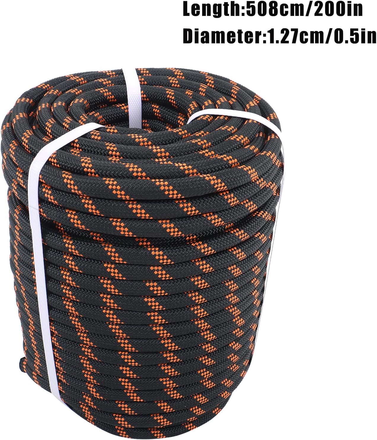 1/2in x 200ft 48 Strands Arborist Tree String Polyester Braided Rope Bull Heavy DutySpecification:This package includes 1 x 1/2in x 200ft 48 strands polyester black orange braided rope.Performance:1. No irritating odor during use, ensuring a comfortable working environment.2. Enhanced visibility during night work, eye-catching color for quick location of the rope during work.3. Elastic material, quick rebound after stretching, not easy to deform, not easy to leave permanent crease after bending, keep the appearance clean.4. Complex knots can be easily accomplished, not easy to loosen after tying, binding irregularly shaped objects, not easy to loosen during transportation.5. Both ends are not easy to be used repeatedly, and the special weaving pattern reduces the chances of self-tangling and knotting.6. Suitable for garden trimming, cargo bundling, equipment traction and other scenarios, easy to handle outdoor facilities, temporary supports.