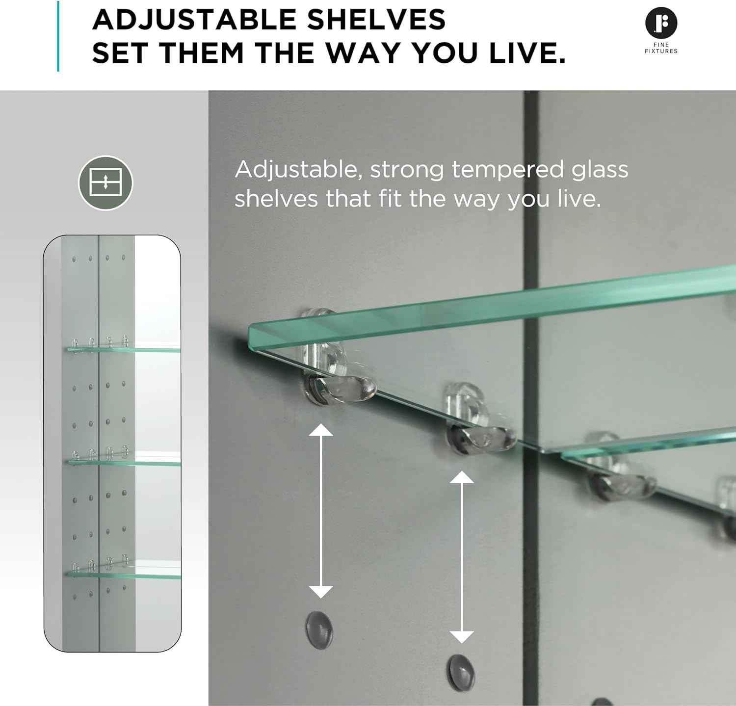When it comes to quality and durability, Fine Fixtures is the way to go. As with everything else we make, our stainless steel and aluminum medicine cabinets will bring your bathroom designs to life. These standalone cabinets feature sleek designs that open up the space and catch the light, creating the illusion of roominess while providing added storage space. Their re ned designs are easy ways to upgrade your bathroom space. Choose from a number of styles and sizes, each with its own unique touch to suit your individual taste and decor. The various cabinets all come with adjustable shelves, allowing you to tailor your cabinet to your speci c needs. When you pick your cabinet, whether it includes LED lighting strips or features a seamless mirrored surface, our timeless styles ensure that you will love your medicine cabinet for the duration of its long life.