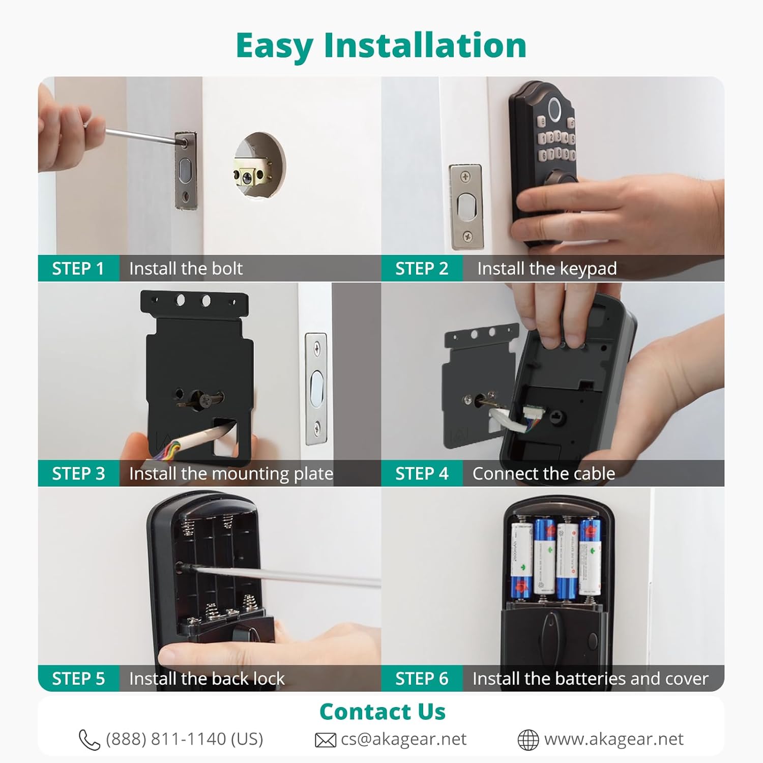 | Included Components | Fingerprint deadbolt door lock, 2 Standard Key, Latch, Strike Plate, Screws, Installation Instructions |