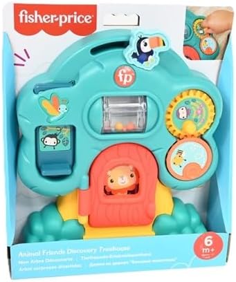 Engage your toddler with this Fisher-Price Animal Friends Discovery Treehouse, filled with activities like sliding, pressing, rolling, and spinning. As they interact with the cute animal figures, your little one's fine motor skills develop, and their senses are stimulated by vibrant colors and sounds, teaching them about cause and effect. Suitable for ages 3 and up, this toy encourages hands-on fun and learning. Decorations may vary.