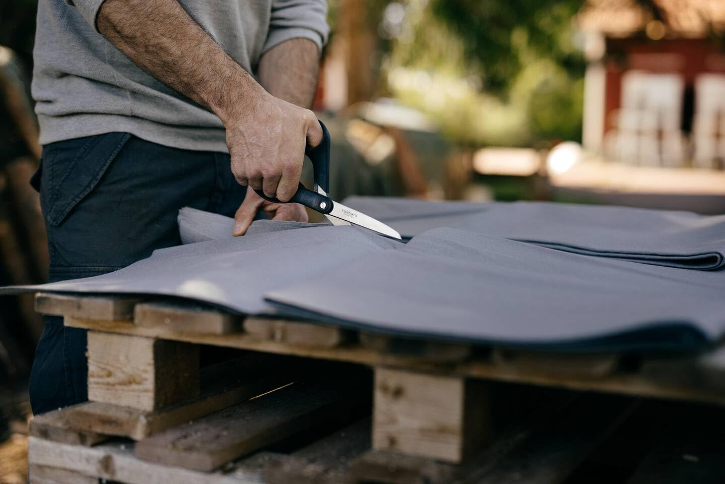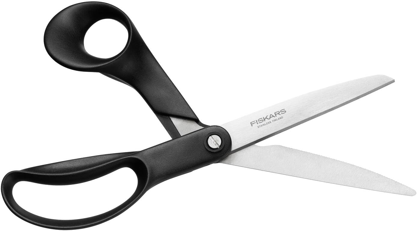 Durable scissors, ideal for pruning plants, wire, cork, and wallpaper, Pleasant grip and firm hold thanks to ergonomically shaped handles made of high-quality plastic, Effortless cutting through thicker materials thanks to high-quality, stainless steel blades, With notch for cutting wire, Contents: 1x Fiskars Robust Scissors, Scissors Length: 25 cm, Weight: 126 g, Material: Stainless Steel/Plastic, 1020478