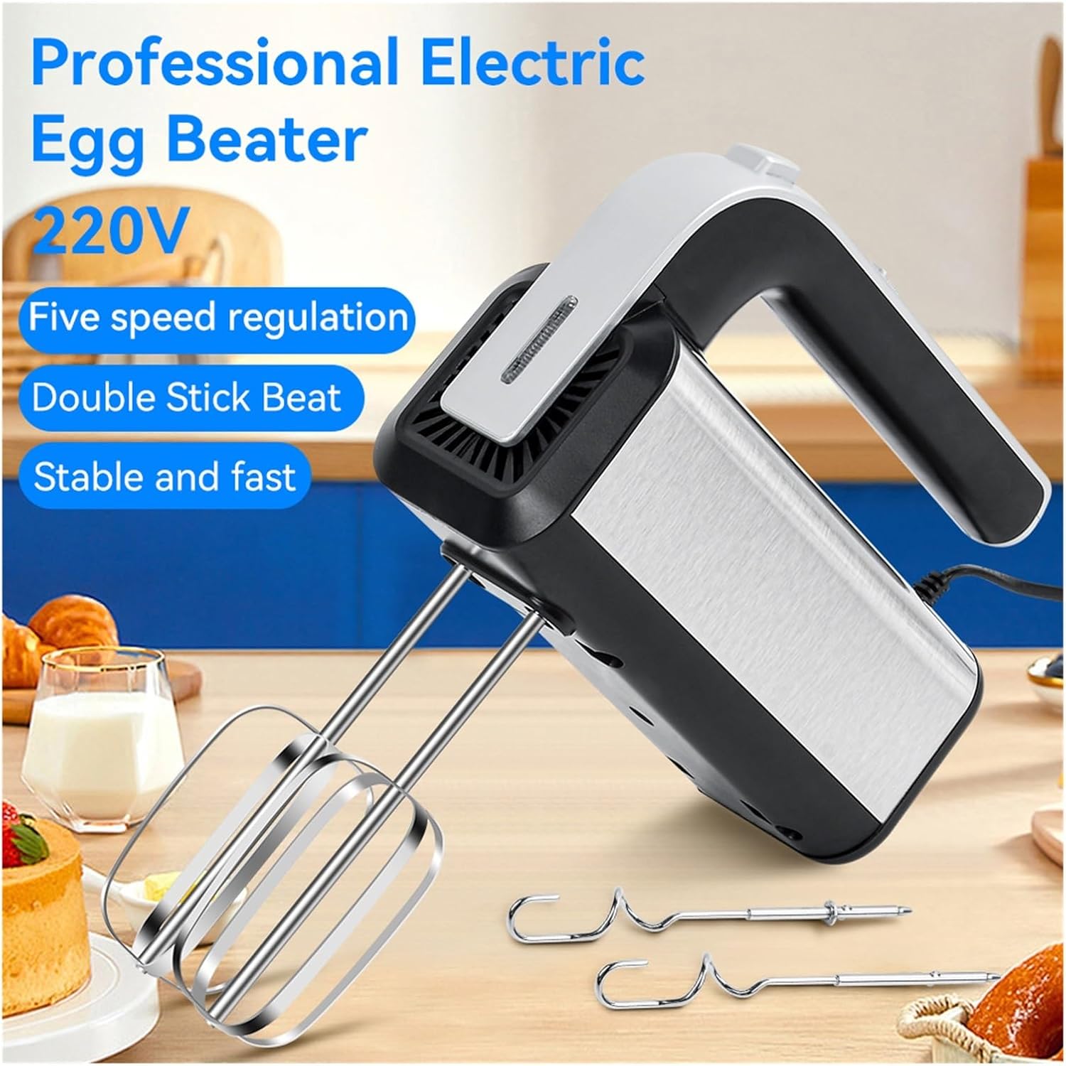 Introducing the 300W Electric Handheld Egg Beater, your ultimate kitchen companion for all your baking and cooking needs. This powerful mixer features a robust 300W motor that ensures efficient mixing and whisking, making it for whipping cream, kneading dough, and more. With 5 adjustable speed , you can easily tailor the mixing speed to suit your specific tasks, whether you're preparing a delicate meringue or a thick dough. Its ergonomic design provides a comfortable grip, allowing you to mix with ease, even during extended use. Compact and lightweight, this mixer is easy to store and transport, making it an excellent choice for home kitchens and baking on-the-go. Elevate your culinary creations with this versatile tool that enhances your cooking experience!