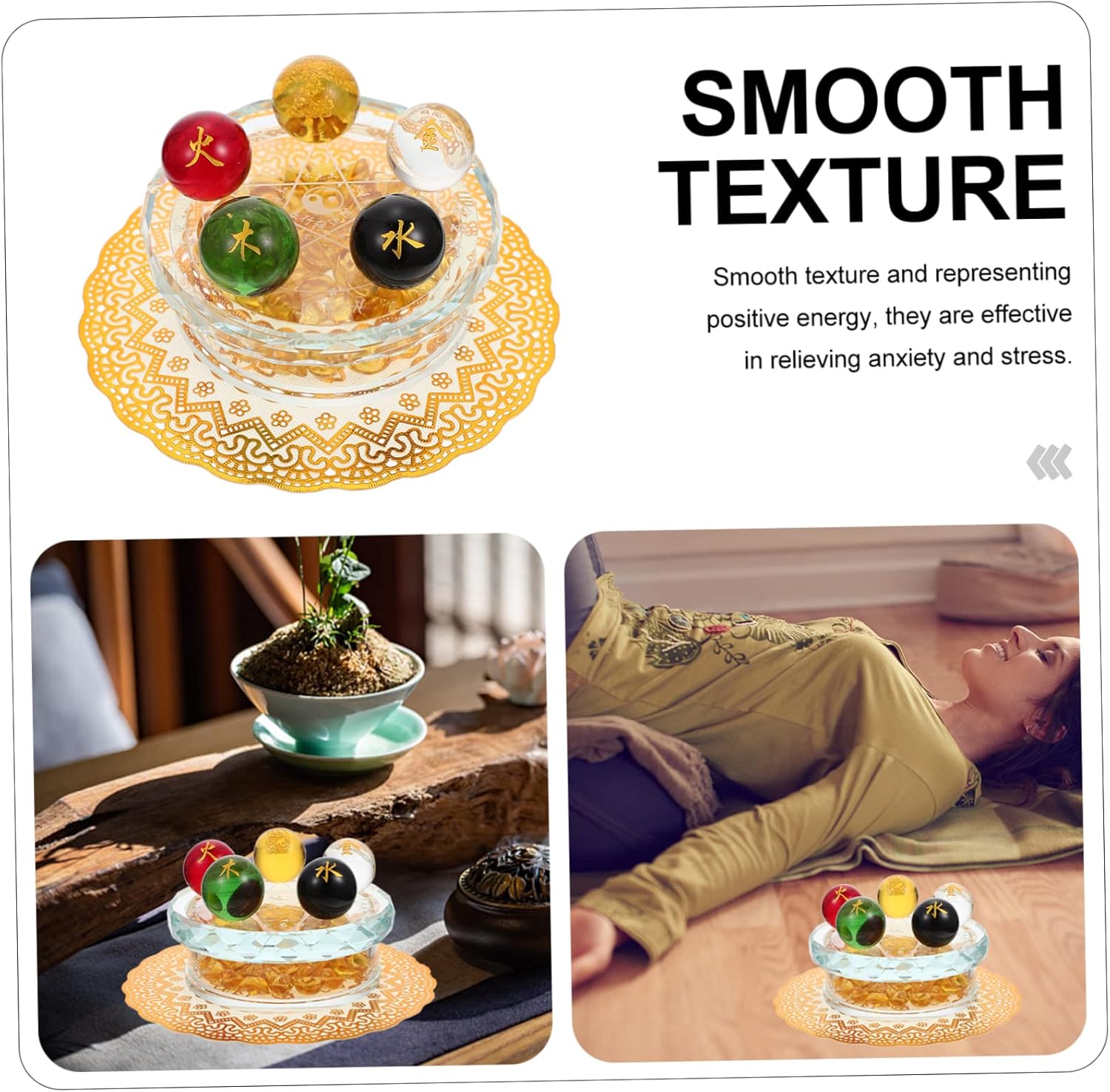 Package Include 5 × Glass Balls 1 × Glass Stand with 1 × Packing Case 1 × Cushion Features - Color: Golden decorative sphere. - Material: Glass gold decorative balls. - Size: 12.00X12.00X7.00cm/4.72X4.72X2.75in Fortune Sphere Ball Decors - Smooth texture and representing positive energy, they are effective in relieving and stress glass decorative balls. - Each of the 5 glass ball represents a physical, emotional or , helping to enrich one's spirit and well-being decorative glass balls for bowls - With a display stand, you can put the glass balls on the stand as a desktop decoration decorative glass balls. - The case is a symbol of good fortune and wealth, which makes it a perfect housewarming present Glass Ball Decor. - After careful polishing process, they have a comfortable touch an excellent hand feeling Glass Ball with Base.Goods Informationfortune ball With the display stand, you can display them very well.glass balls decorative It is perfect for display balancing, , etc.Glass Ball Ornament These five-element glass balls are smoothly and carefully polished gemstones.glass ornament balls They are also decorated with a case display stand, which is delicate and blessing, and a great present for collectors or your friends