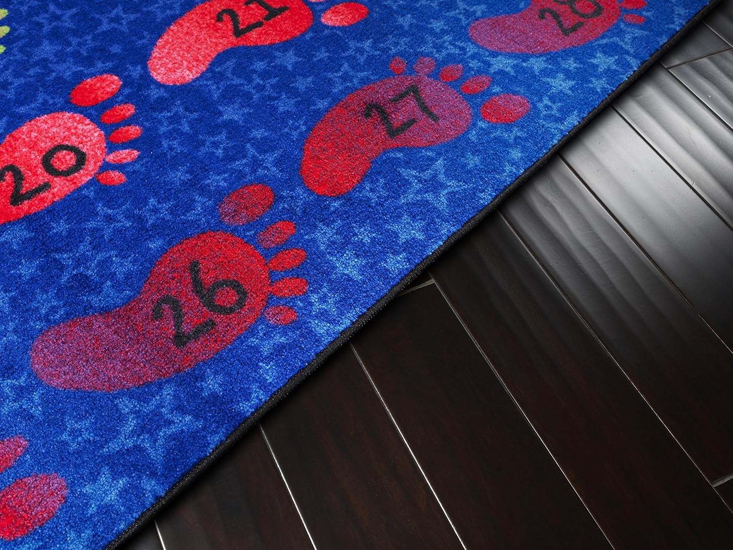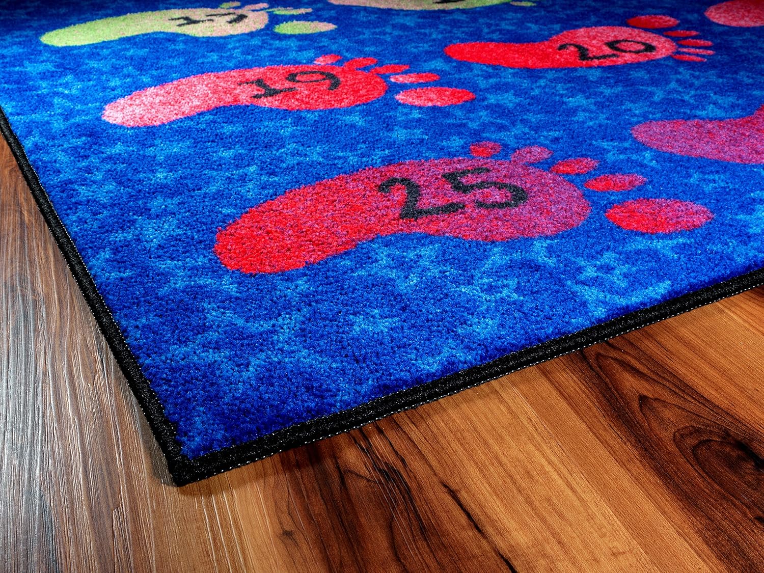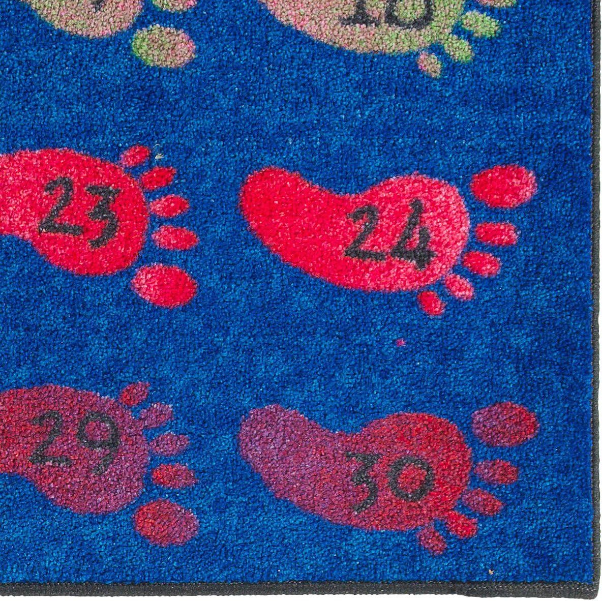 Get a kick out of counting with these bright feet numbered 1 to 30. Students will fall head over heels for this math aid that can be hung on the wall or used beneath your feet! This rug is part of the Easy Cost-Easy Care washable collection that features skid resistance backing for added safety.