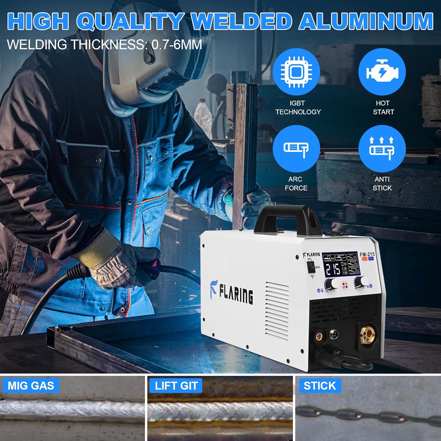 FLARING Plasma Cutter,65 Amp Plasma Cutter Machine 120V 240V 4/5" (20mm) Max Cutting 1/2" (12.7mm) Clean Cut with FLARING MIG Welder 215amp 6 IN 1 Welder Machine 120V/240V 2lbs/11lbs Wire Compatible