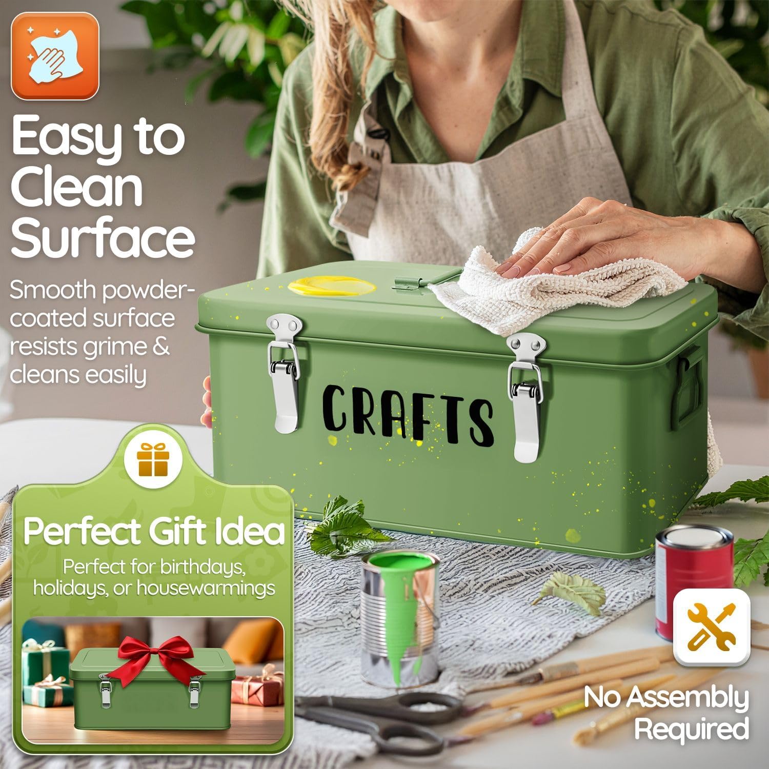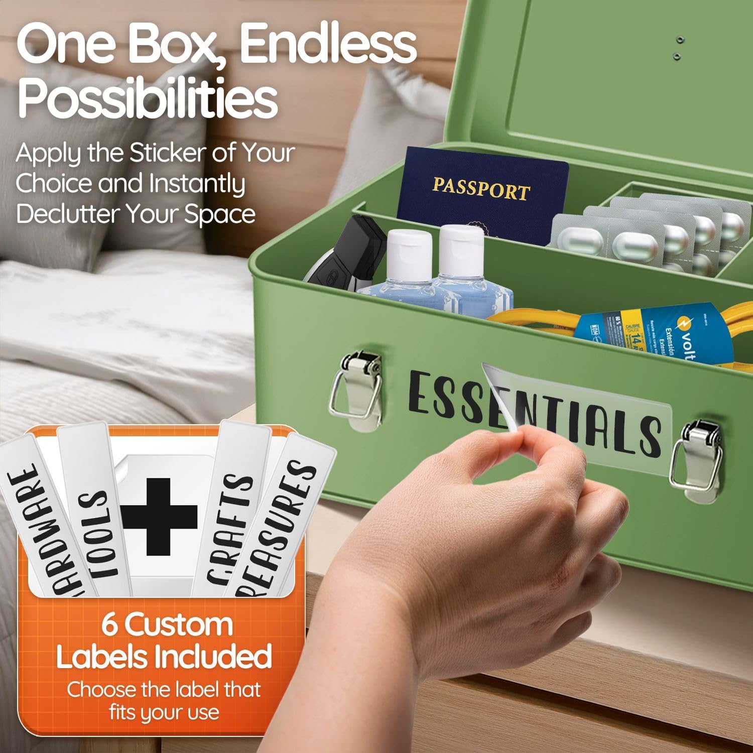 The Flexzion Multipurpose Storage Box is a reliable and versatile solution for organizing tools, medical supplies, craft materials, and everyday essentials. Made from galvanized steel with a durable powder-coated finish, this lockable steel storage box is built to resist rust and wear well for use at home, in the garage, at school, or on the go.Designed with four compartments, it helps keep items neatly separated and easy to find. The metal box with a lid features dual latch locks for added security and foldable side handles, along with a top carry handle for effortless transport.Perfect for DIYers, gardeners, teachers, mechanics, and families, it functions well as a toolbox, medical box, seed organizer, or tin storage box. Its compact size fits easily on shelves or in cabinets, while the customizable front label panel adds a professional touch.With a smart mix of durability and portability, the Flexzion aluminum box with lid offers dependable storage for a wide range of tasks and environments. Whether you're managing household items or packing supplies for a trip, this steel storage box brings order and convenience wherever you need it.Declutter your space with a tough, flexible storage box made to keep life organized. Choose Flexzion.Specification:Material: Galvanized IronColor: GreenFinish: Powder-coated surfaceExternal Dimensions: 32.5 cm (L) x 18 cm (W) x 13 cm (H)Estimated Capacity: Approx. 6.4 litersInterior Layout: 4 divided compartmentsLid Type: Hinged with dual metal latch locksBase Design: Reinforced raised baseHandle Type: Foldable side handles for portabilityPackage Content:1x Flexzion Multipurpose Metal Storage Box - Metal Box with Lid, Handles, and Dual Latches for Medical and Tool Storage - 4 Compartments with Safety Lock, Green