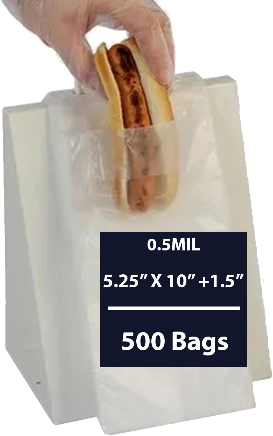 These 5.25" x 10" + 1.5" flip-top saddle pack hot dog bags are made from durable, high-density polyethylene (HDPE) for reliable food packaging. Featuring a clear, unprinted design, these versatile bags make it easy to quickly package hot dogs, sandwiches, and other snacks while keeping food fresh. The saddle pack format ensures efficient handling and high-volume use, while the lip and flip closure provides a secure seal without requiring ties or clips. Perfect for restaurants, food trucks, concession stands, and catering, this saddle pack hot dog bag offers bulk convenience and consistent quality for commercial food service operations.