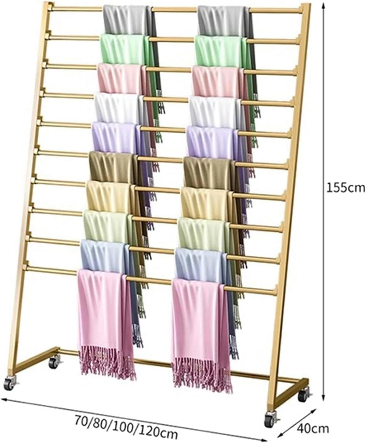 Silk Scarf Display Stand, Scarf Holder Organizer, Freestanding Metal Scarf Display Rack, Suitable for Clothing Store Commercial Home Furnishing Product Name: Scarf Rack Specification: 70*40*155cm, 80*40*155cm, 100*40*155cm, 120*40*155cm Material: Metal Colours: Black/ Gold/ White Package Included: 1* Scarf rack Please note: 1. While we display colors as accurately as possible, due to differences in computer monitors, colors may vary. 2. Due to manual measurement, there may be an error of 1-3 cm in the product size.