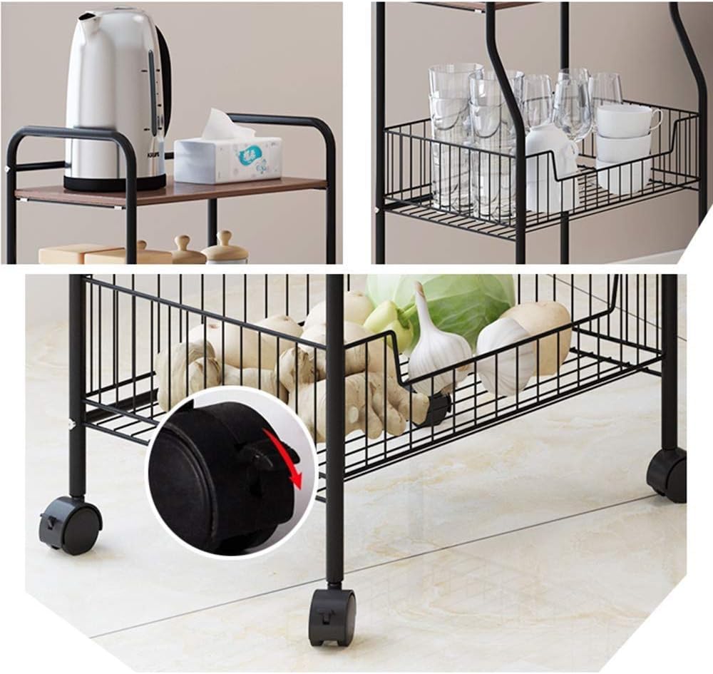 Welcome to the " " store Brand Name: Product Name: Kitchen trolley Applicable scene: home kitche alcony / bedroom / study material: metal Process: high temperature paint Size: 42.34.5*114CM Product gross weight: 5KG Color: black shelf + walnut color board Bearing capacity: 60KG Installation method: floor type Whether to assemble: assembly If you need more information, please contact me.