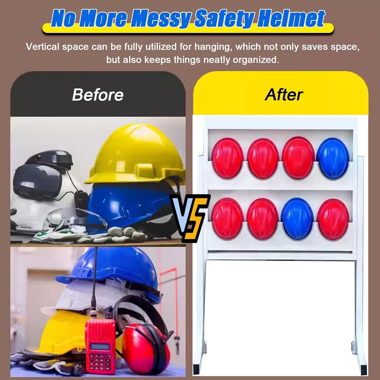 Are you struggling to find a practical solution for storing your safety helmets? Our Safety Helmet Holder is designed to bring order to your workspace, whether it's an office, workshop, construction site, or garage. Say goodbye to clutter and hello to a tidy, organized environment. Crafted from durable galvanized steel, our helmet holder offers exceptional stability and longevity. With a modern and simple design, it seamlessly fits into any setting while making your safety gear easily accessible. Available in various lengths (82cm, 107cm, 130cm) and heights (143.5cm, 149cm), it provides multi-layer storage options that effectively utilize your space by maximizing exposure. Key Features: - Versatile use: Perfect for helmet shops, retail stores, offices, workshops, and factories. - Stable construction: Made from 1.38mm thick galvanized steel, ensuring your helmets are securely stored. - Open design: Allows for easy access to your helmets, making it convenient for daily use. - Space-saving: The freestanding design helps you save valuable floor space while keeping your helmets organized. - Easy maintenance: Water and rustproof materials make cleaning a breeze. - Simple assembly: Quick to assemble and disassemble when needed. Package Contents: - 1 x Hard Hat Rack (Helmets not included) Please note: Minor measurement variations (1-3 cm) may occur due to manual measurement, and colors may differ slightly from what is displayed due to lighting conditions. Experience the difference our Safety Helmet Holder can make in your daily routine—order yours today and transform your storage experience!