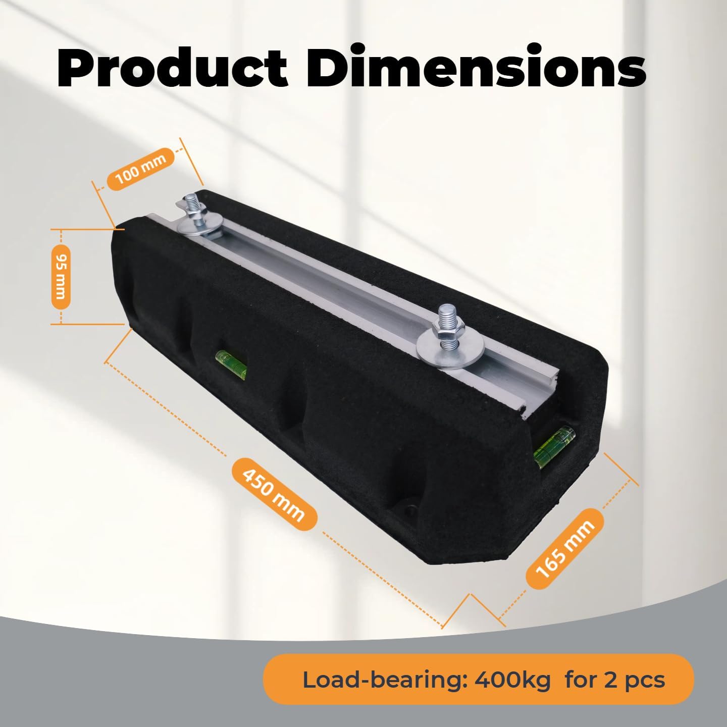 Professional floor console with spirit level for perfectly leveled outdoor devices. Our floor console with integrated spirit level revolutionises the installation of air conditioners and heat pumps. This complete anti-vibration system combines precise alignment with highly effective vibration damping - designed for tradesmen and demanding DIY enthusiasts. The 4 advantages of this floor console: 1. PRECISE LEVELING GUARANTEED Integrated level: Two high-precision spirit levels (horizontal and vertical) allow millimetre precise alignment Functional safety: Horizontal mounting is essential for correct refrigerant delivery and prevents premature compressor damage Easy adjustment: Thanks to the screwed rubber feet, the console can be perfectly aligned even on uneven surfaces. HIGHEST LOAD CAPACITY & STABILITY Load capacity: Certified load capacity of 400 kg - Suitable for large multi-split systems and commercial heat pumps Frame material: High quality powder-coated steel (2 mm thick) for lasting stability Dimensions: 450 mm length - optimal fit for 95% of all commercially available outdoor units 3. Maximum vibration damping 2-point damping system: Four special silent blocks made of oil and ozone resistant rubber absorb vibration Noise reduction: Up to 80% less body noise transmission compared to direct mounting. Wear protection: Protects the bearings and mechanics of your device by eliminating resonant vibrations. 4. Weatherproof and durable corrosion protection: powder coating according to DIN 55633 for maximum rust resistance. UV resistance: all rubber components are equipped with UV stabilisers – no embrittlement. Temperature range: -40 °C to +80 °C – all year round use