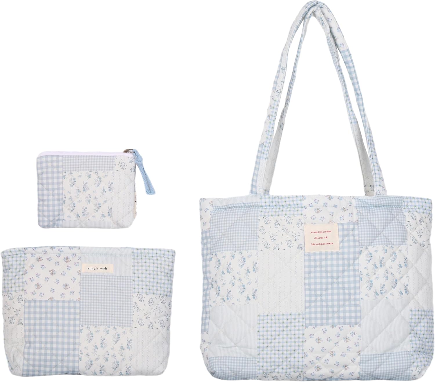 Floral Quilted Cotton Shoulder Bag Set 3-in-1 Handbag with Matching Mini Pouch Cosmetic Bag Large Capacity Tote A053 This Product include 1shoulder tote+ 1cosmetic bag+1mini pouch
