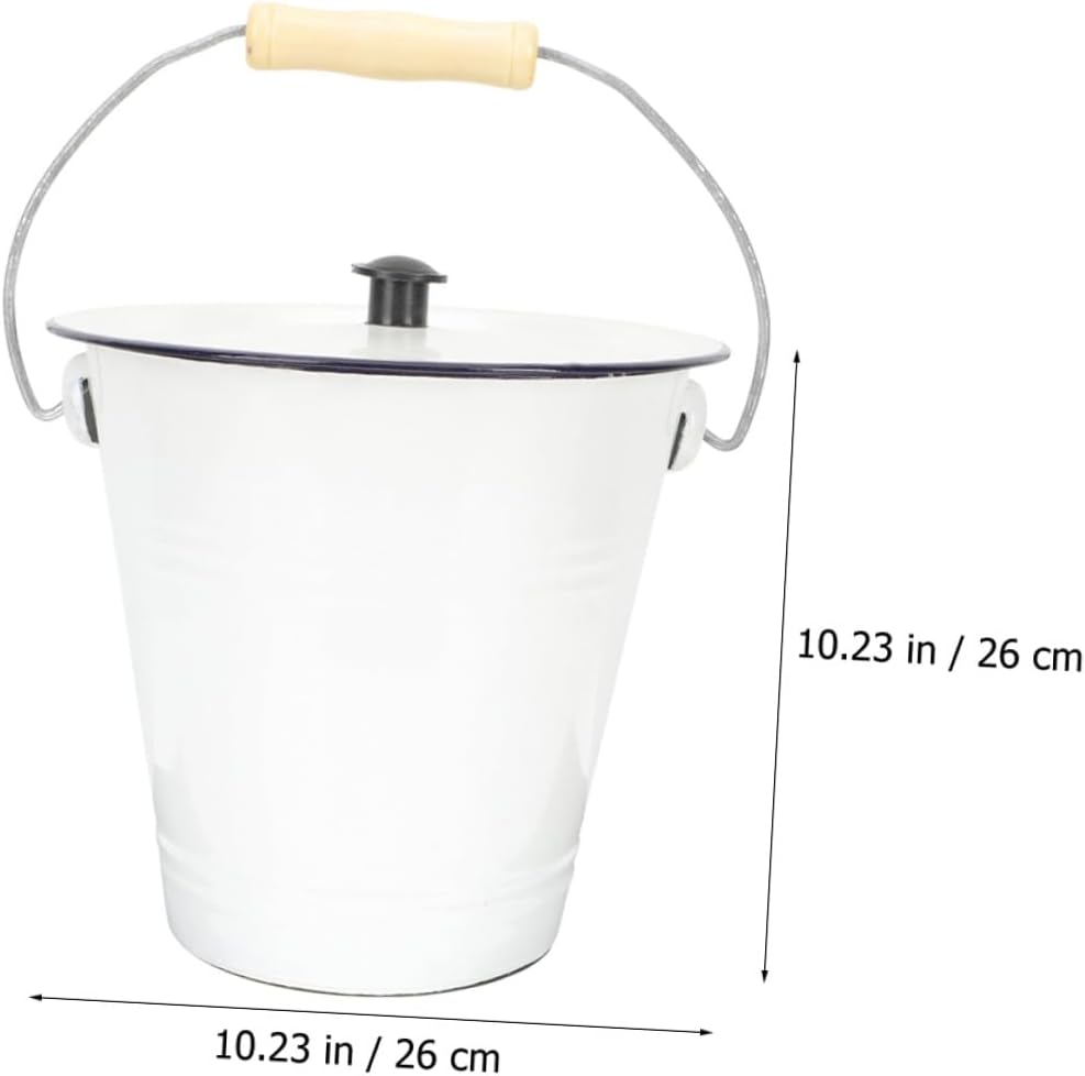 Package List 1 x enamel bucket with lid Features -Material:Enamel, wood portable bucket - Size: 26.00X26.00X25.00cm/10.22X10.22X9.82in lint bin - Color: White buckets for drinks -Capacity: About 7 L small bucket -It's a portable bucket with handle and lid, convenient to carry, and , very metal pail with lid. -With a cover, more widely used liquid storage bucket pail. The lid can the dirty thing vintage storage bucket. -It can be used as a water bucket, paint bucket, fishing bucket, flower pot and much more wine canister. -This bucket is made of sturdy enamel material, and tough, can be used for long time bucket for drinks. -Our bucket is , , and ready for use in any environment for a long time metal bucket.Goods Informationlaundry room organization and storage This bucket is made of wood and enamel materials that is enough to serve you for a long time.white enamel bucket With a handle, it is easy to move and carry, which can bring you great convenience.flower vase It is versatile, which can be used as household bucket, milk bucket, ice buckets, and so on